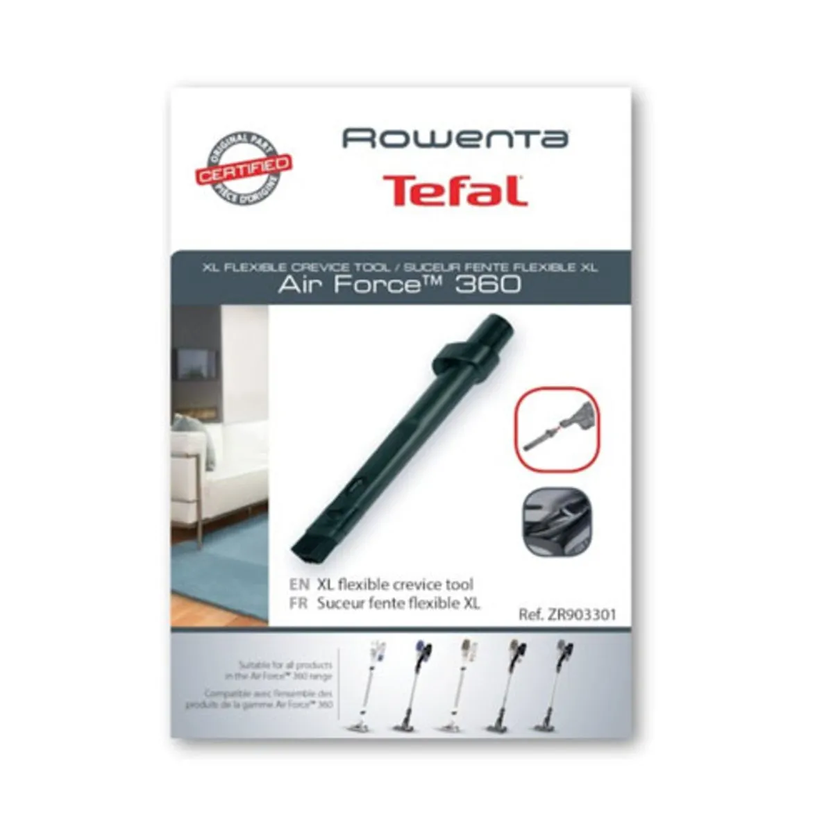 Accesorio tubo limpieza de ranuras de recambio Rowenta para aspiradora Air Force 360, All in One 460, X-Pert Essential 260. Este tubo están concebidos para limpiar cómodamente mobiliario del hogar o también están recomendados para el coche.