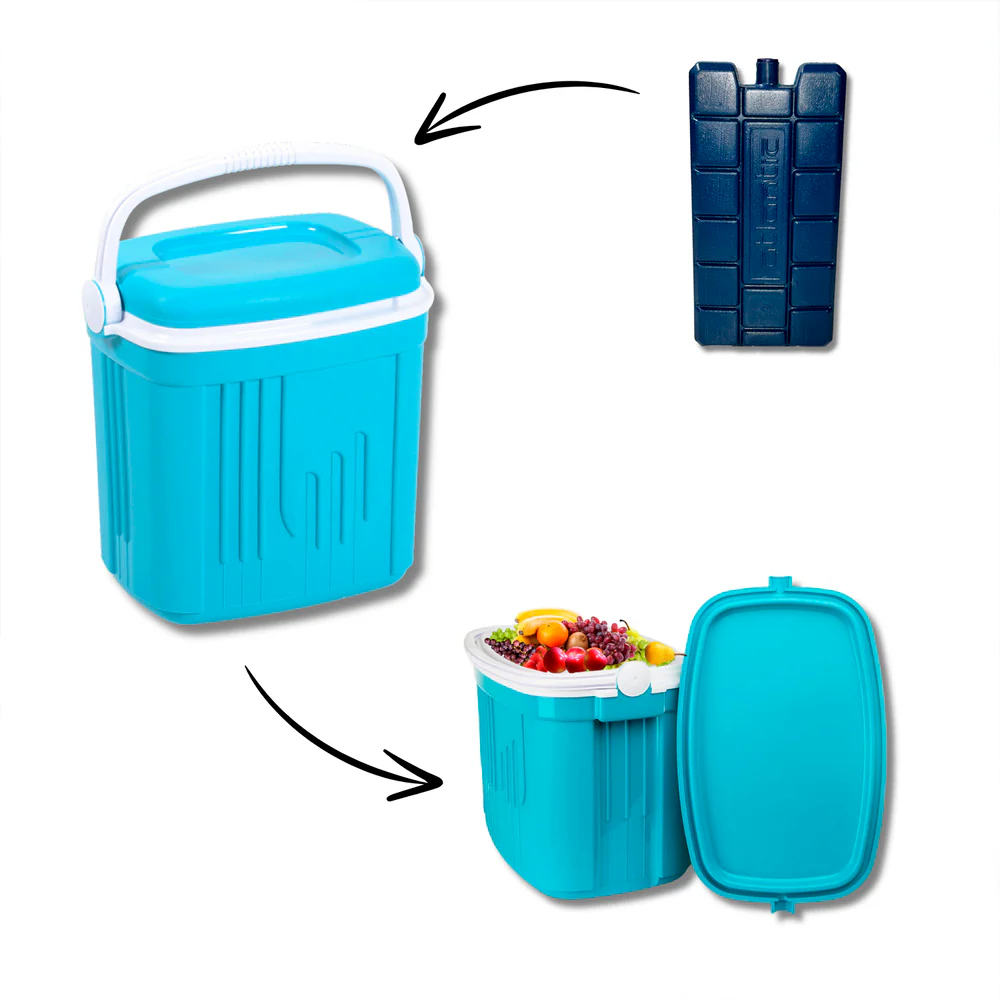 - Es un accesorio esencial para mantener tus alimentos y bebidas frescos durante tus viajes o salidas al aire libre