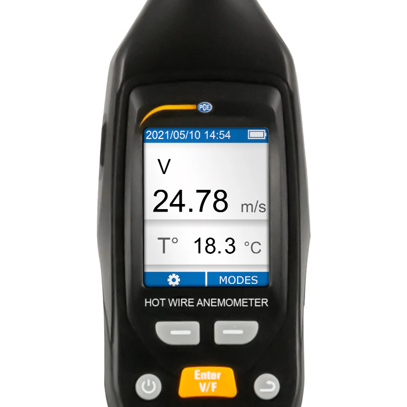 La memoria del anemometro de hilo termico le permite guardar hasta 10 000 valores. Puede recuperar los valores guardados directamente en la pantalla del anemómetro de hilo térmico. También es posible transferir los valores guardados en el anemometro de hilo termico a un ordenador a través de la interfaz micro USB. Los valores guardados se muestran en un archivo CSV, lo que permite analizar y procesar los datos como uno desee.