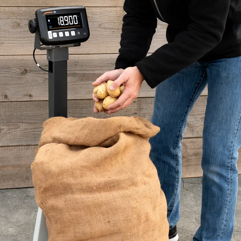 El soporte permite manejar cómodamente la balanza con verificación tanto cuando se utiliza en el suelo como en la mesa. Este soporte es desmontable gracias a las a las conexiones roscadas y de enchufe, por lo que la balanza verificada también puede utilizarse sin soporte. La longitud del cable entre la pantalla y el plato de pesaje es de aproximadamente 1,5 m. El ángulo de inclinación de la pantalla puede ajustarse a través del soporte de la pantalla, lo que permite adaptar la posición de trabajo y el ángulo de visión. La pantalla invertida de alto contraste integra unos dígitos con una altura de 28 mm. Gracias a ello es posible leer los valores de la balanza con verificación desde una mayor distancia. Una cubierta protectora transparente protege la pantalla de plástico de la suciedad.