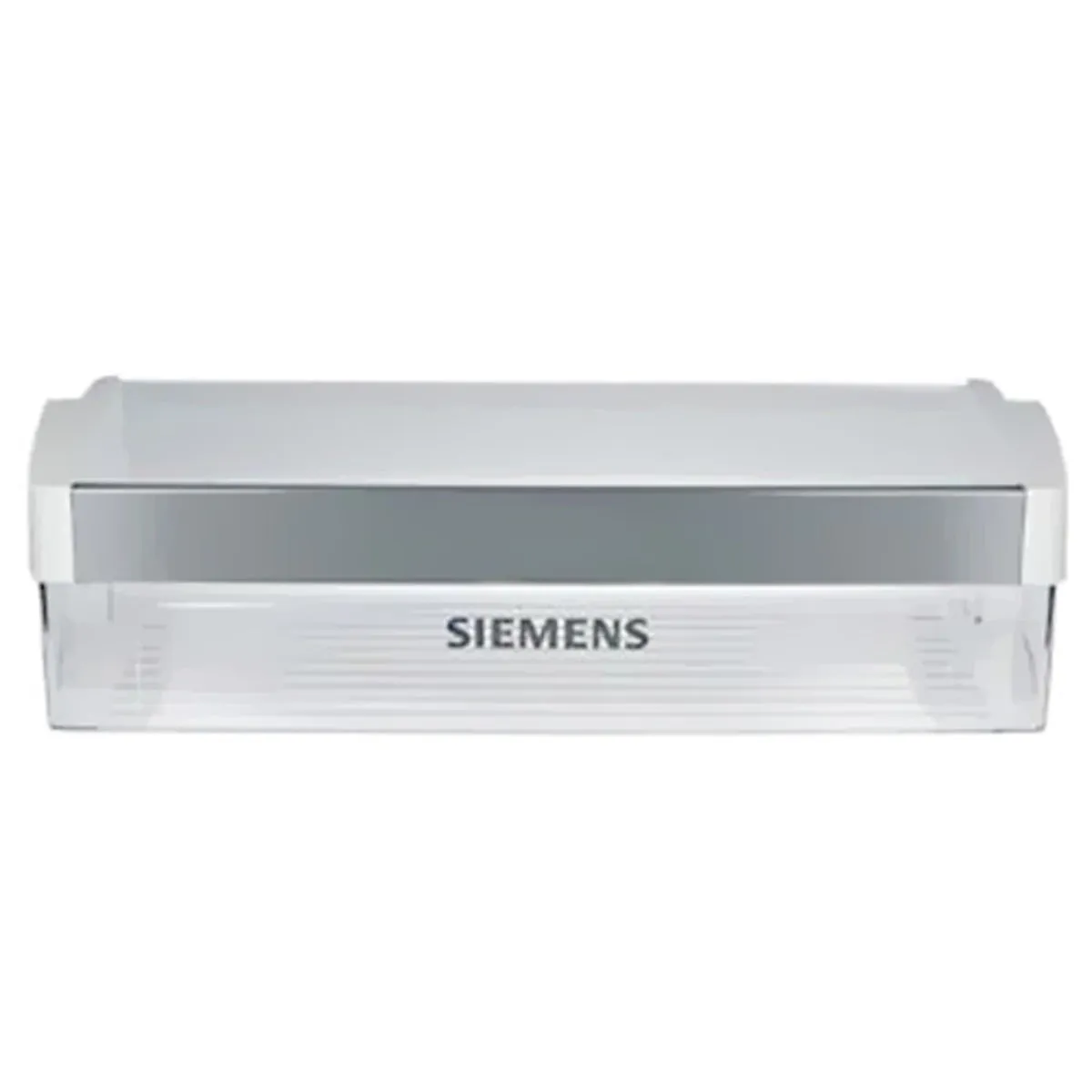 Repisa de puerta de frigorífico americano Siemens. Esta bandeja se coloca en la parte intermedia-baja de la puerta del refrigerador del frigorífico. Este recambio incluye la bandeja y el embellecedor
