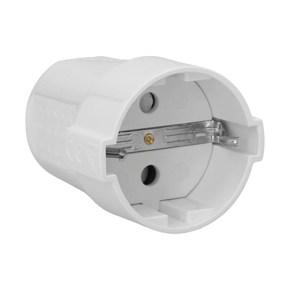 • Artículo conocido como enchufe schuco, enchufe cable, enchufe sin cable, base para alargadera, enchufe alargadera, toma enchufe alargadera, base de enchufe, clavija enchufe hembra
