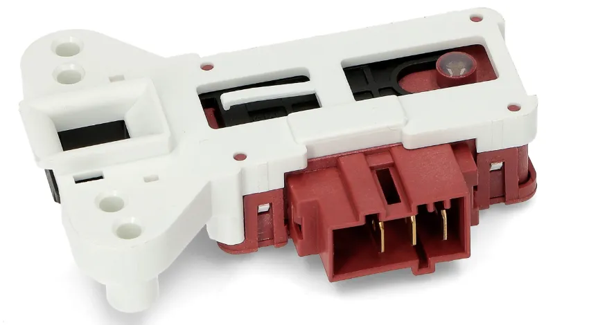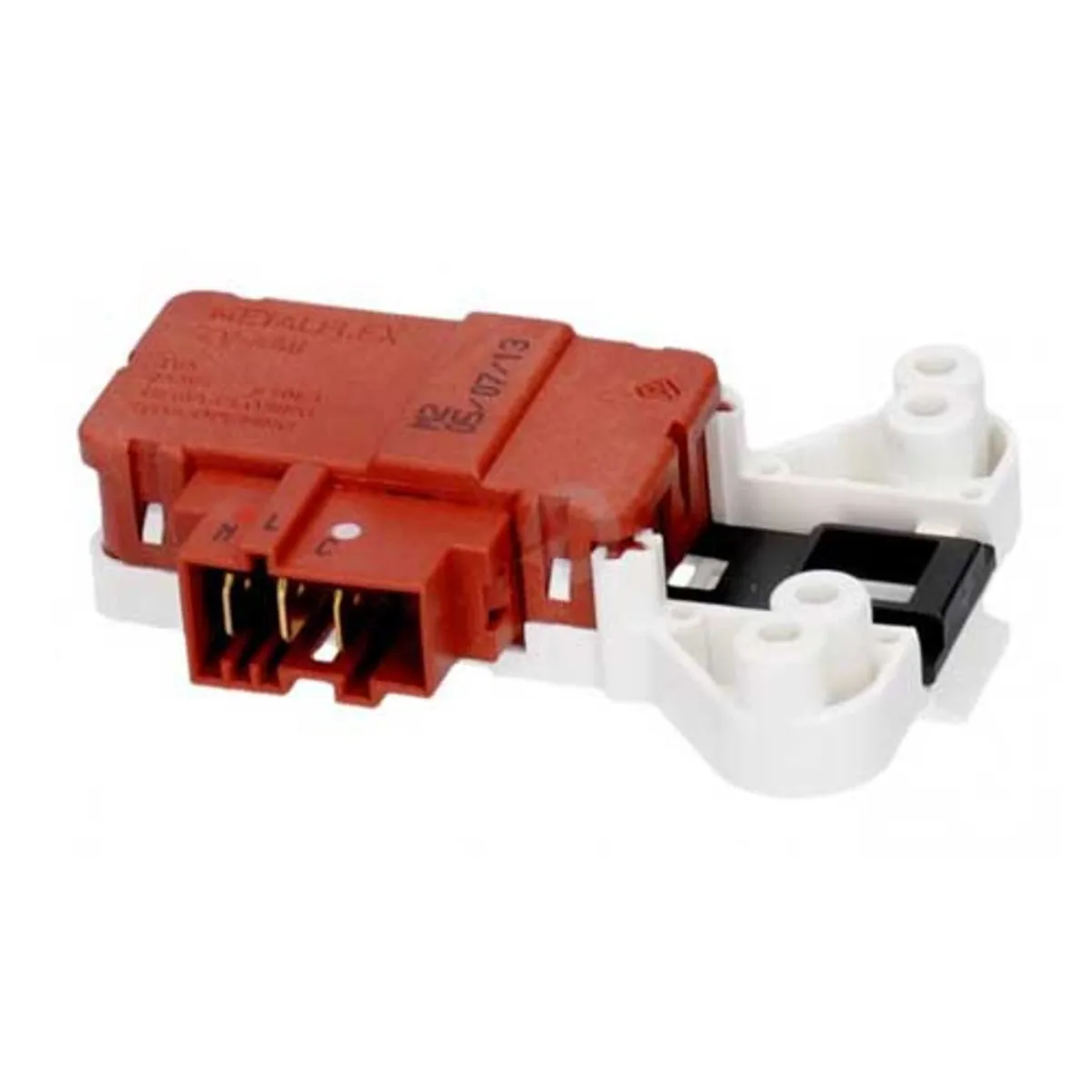 Retardador para cierre de puerta de electrodoméstico de lavado. Esta pieza también hace de interruptor, evitando que el aparato se ponga en marcha cuando la puerta está abierta. En ocasiones, cuando la lavadora no funciona, es porque este recambio está mandando una señal equivocada al módulo del electrodoméstico. metalflek ZV446M5