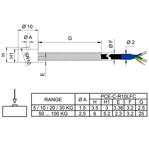 Célula de carga PCE-C-R10LFC Serie 5-100 kg