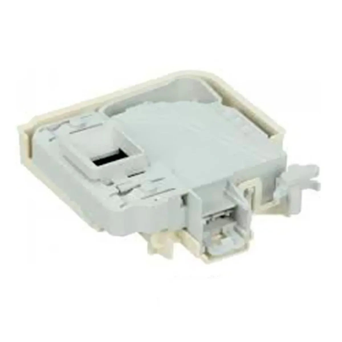 Recambios de blocapuerta de lavadora Bosch, Siemens. Pieza original para reparación de electrodoméstico de lavado. Esta pieza es la que hace que la apretura de la lavadora se bloqueé durante un tiempo después del lavado. Y, en muchos casos, un mal funcionamiento de este repuesto es la responsable de la rotura frecuente de las manetas y ganchos de la puerta del electrodoméstico. También actúa como interruptor de seguridad. De modo que si no funciona eléctricamente, el electrodoméstico puede no ponerse en marcha