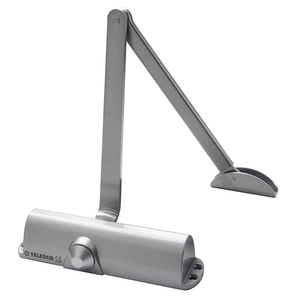 Cierre «Telesco» A-1859-s Plata. Producto de uso profesional diseñado para trabajos de instalación, mantenimiento y reparación. Cierre «Telesco» a-1859-s. – Sin retenedor. – Acabado plateado. – Velocidad regulable. – Articulo conocido como:Cierrapuertas, Cierra puertas, Cierre de puerta, muelle puerta.. Apto para entornos exigentes. Recomendado para profesionales, talleres e industria.