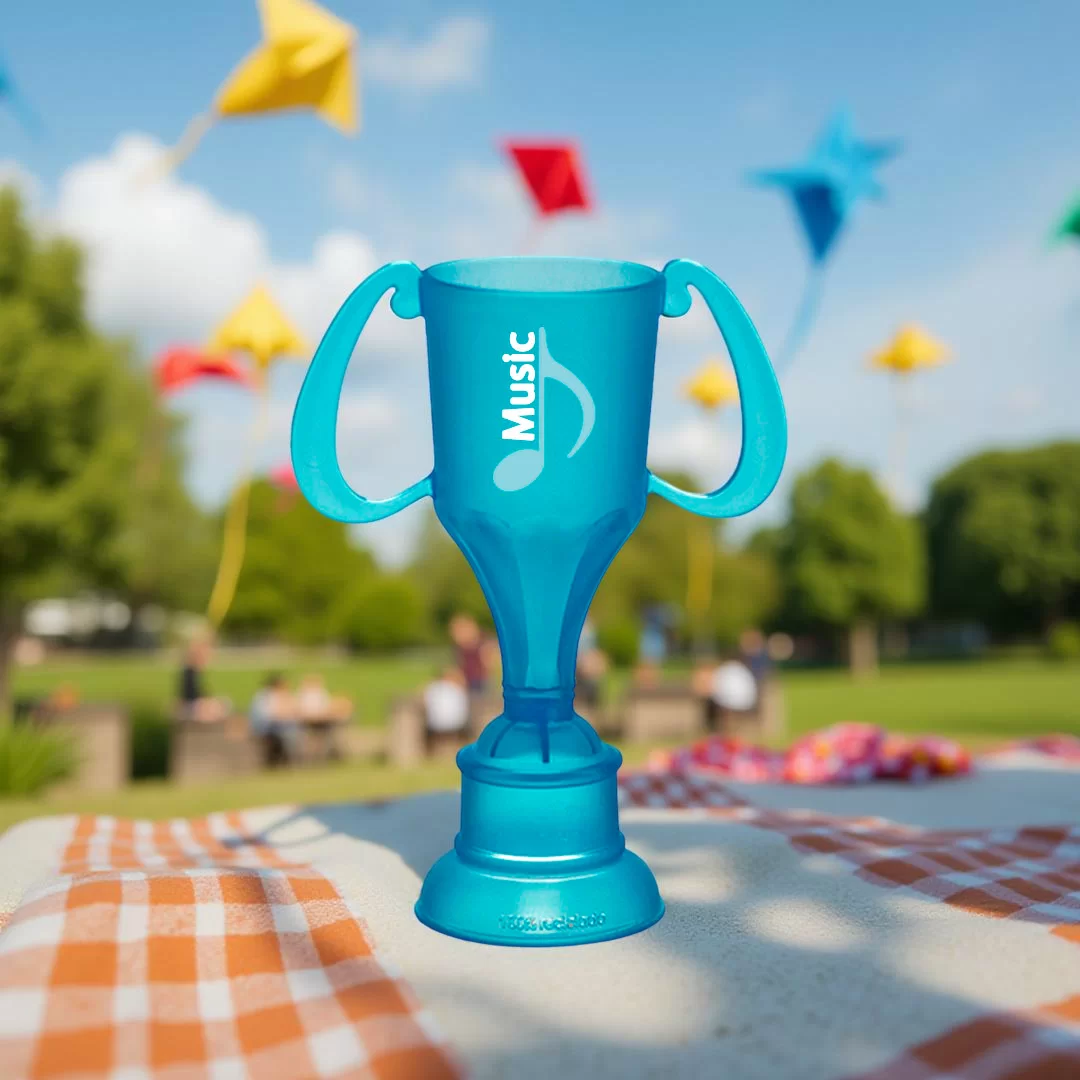 Copa para chupitos con forma de trofeo totalmente personalizable. 35ml de capacidad para brindar con tus familiares y amigos. Fabricada en Polipropileno.
