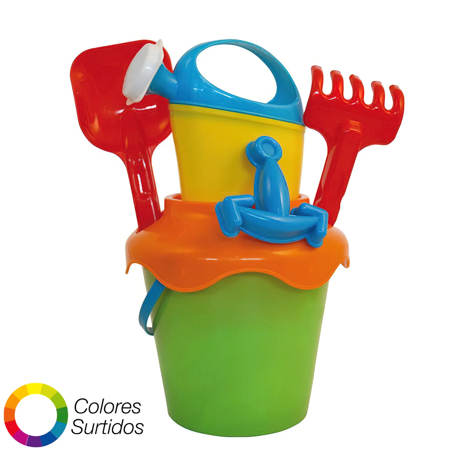 Cubo Playa Con Regadera, pala y rastrillo