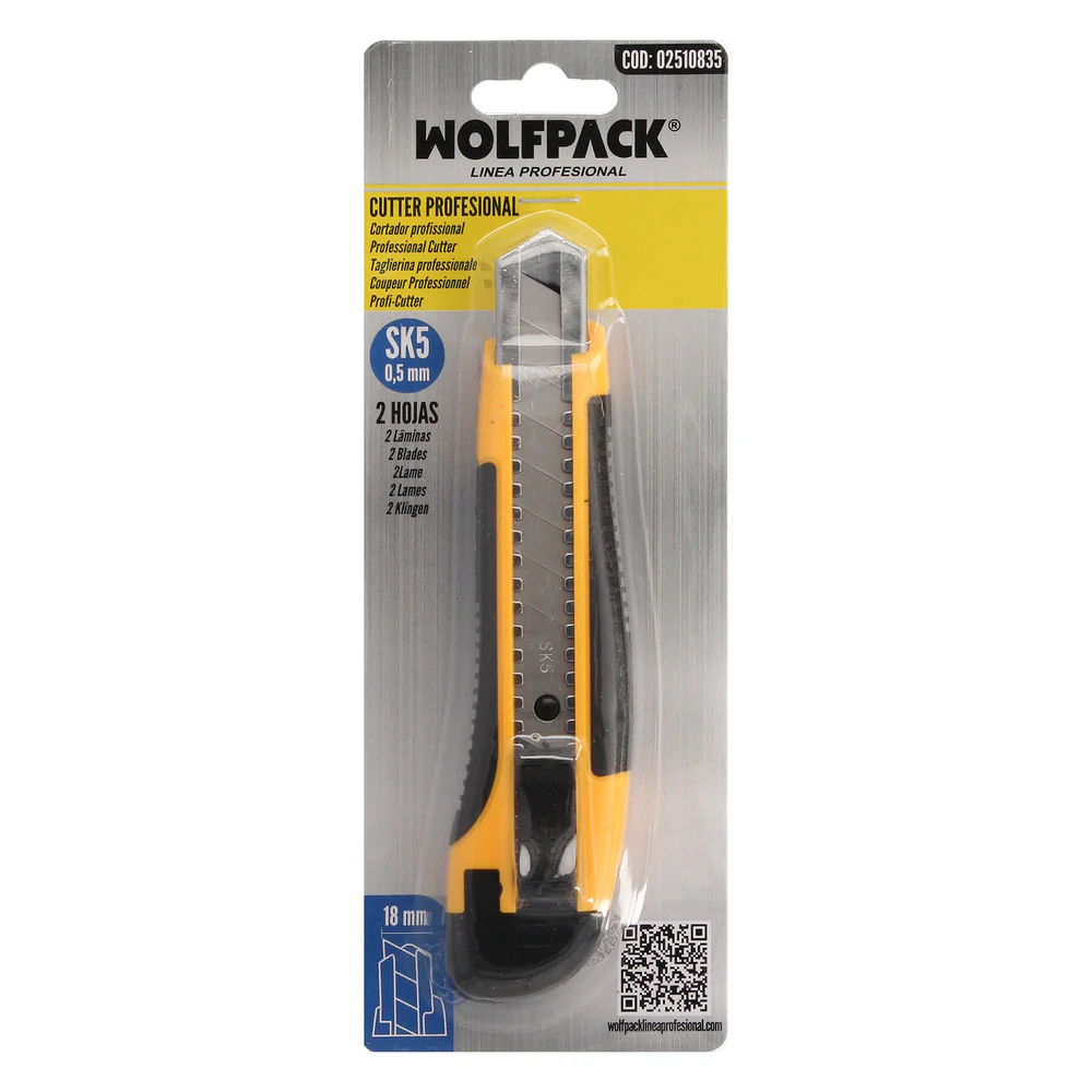 Cutter Con Hoja De 18 mm. Con 2 Hojas. Acero SK5. Agarre Engomado Bimaterial. Pulsador Seguridad Liberación hoja. Cuters Cutters