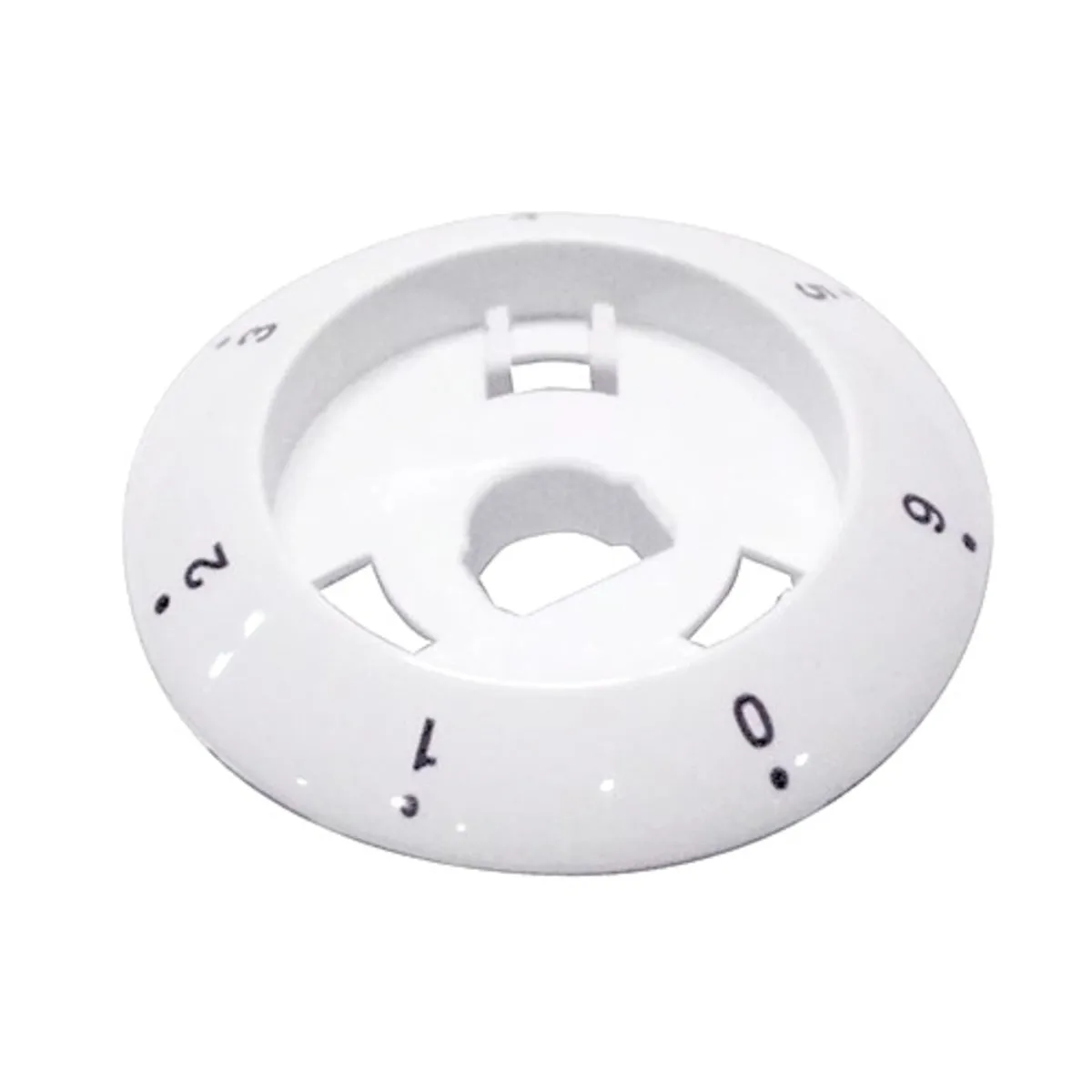 Pieza de recambio para electrodoméstico de cocina. Esta pieza sirve para saber la posición que se selecciona al mover el mando del aparato. Este selector sirve para elegir la potencia de la vitrocerámica. Va numerada de 0 a 6.
