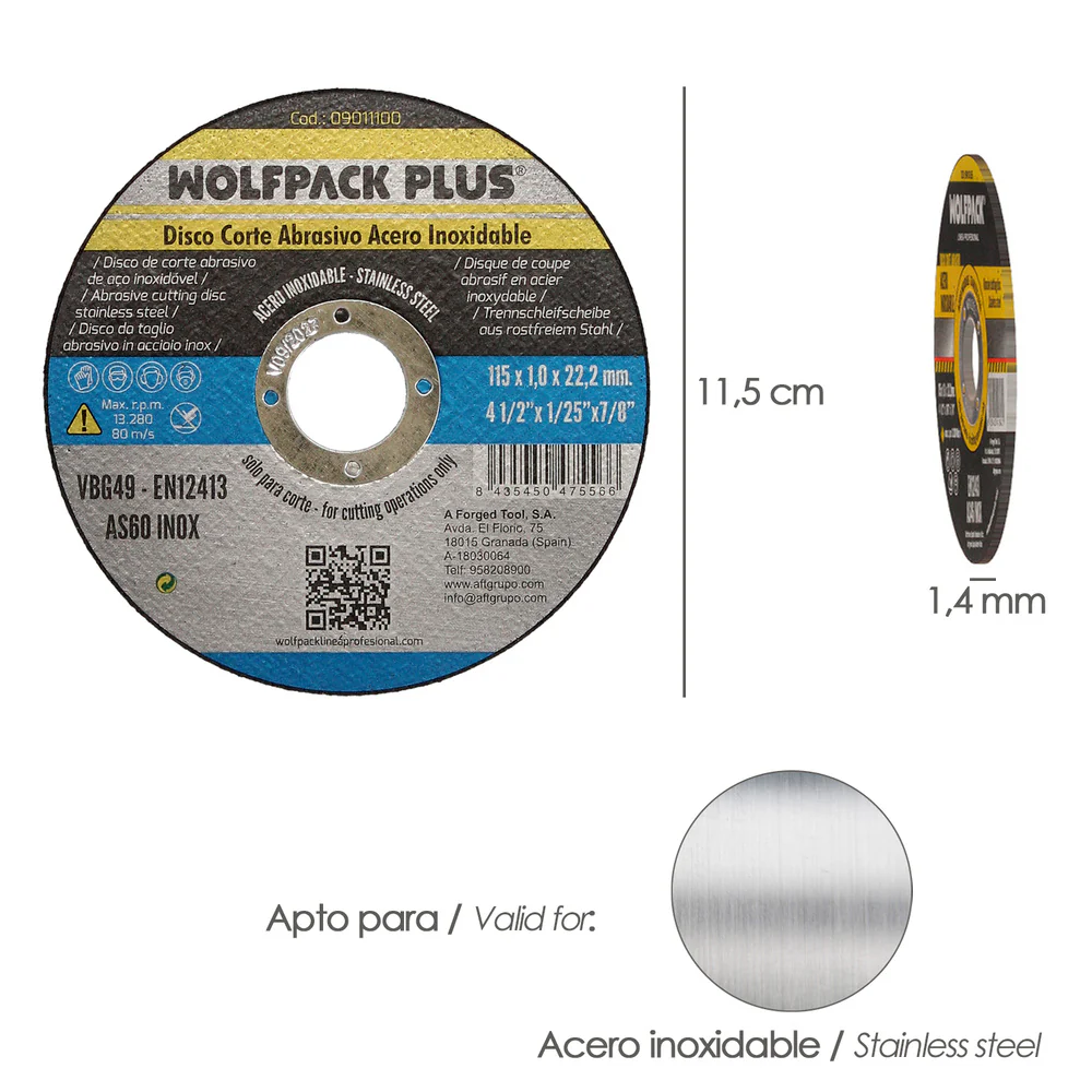 Disco Corte Abrasivo inoxidable de la marca WOLFPACK LINEA PROFESIONAL.