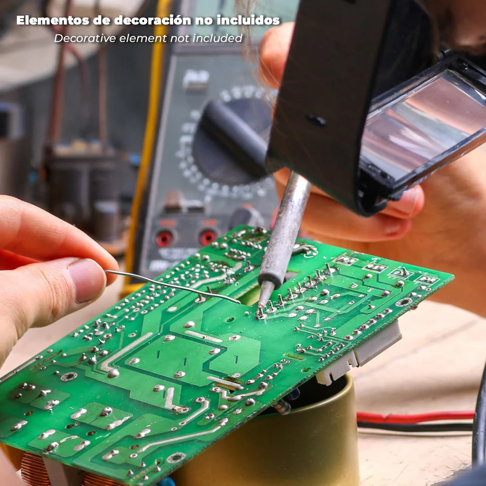 - Ideal para su aplicación en trabajos de soldadura en el ámbito de la electricidad y la electrónica, como en placas de circuitos, componentes electrónicos y otros dispositivos