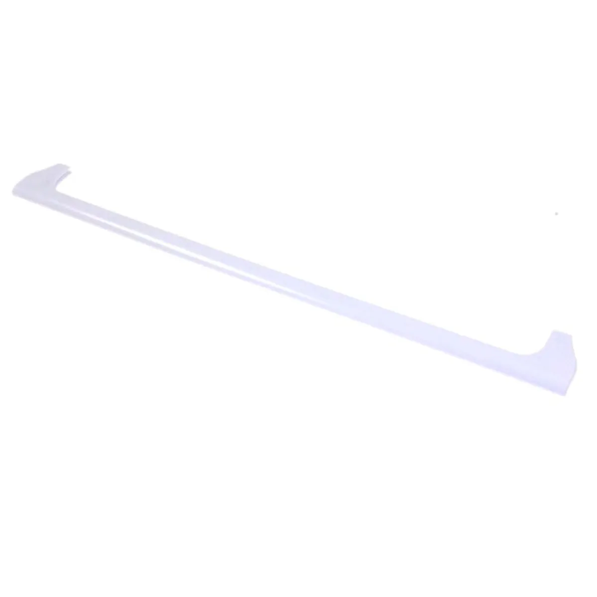 Perfil frontal de estante para frigorífico Beko. Esta pieza de recambio es la moldura de plástico blanco que se pone en la parte delantera de la bandeja del refrigerador. Repuesto original de nevera Beko.