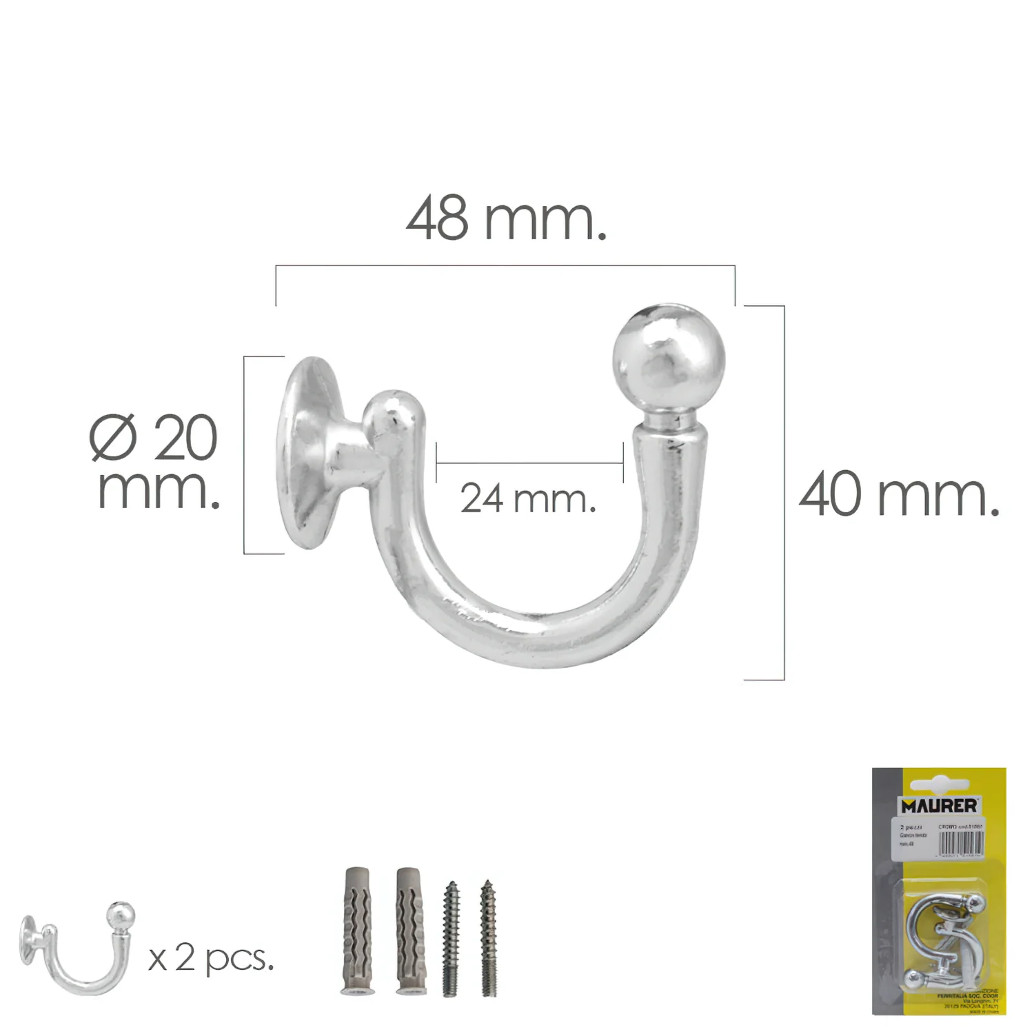 Gancho Cromado Atornillabe 48 mm. Con tacos y tornillos (Blister 2 piezas)