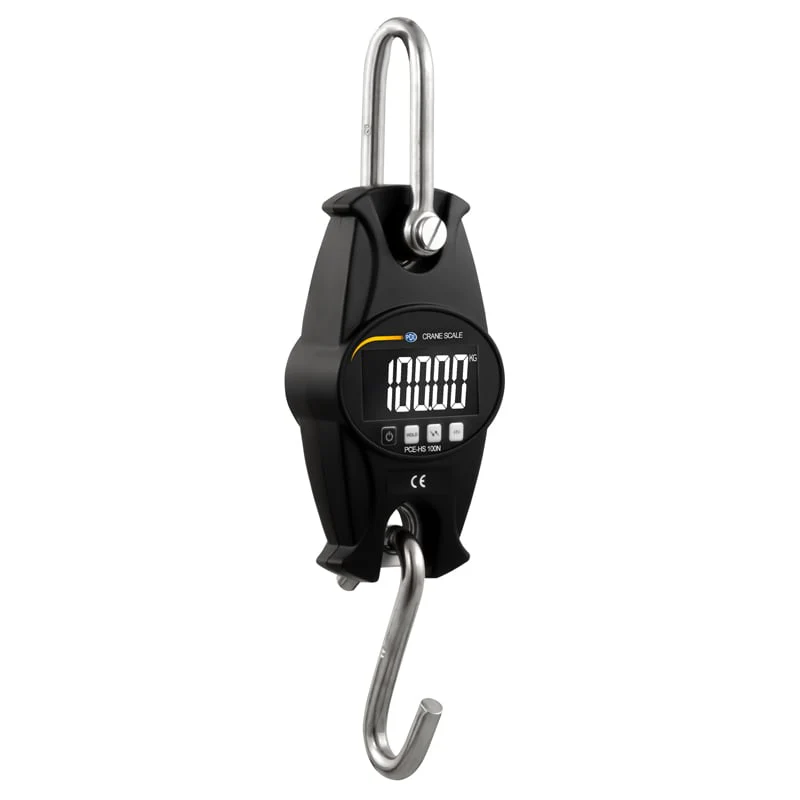 La grúa de carga con rango de pesaje de 0 … 100 kg. La grua de carga es un instrumento de medición exacto ya que pesa con una precisión de ±1 % F.S. La pantalla LCD integra unos dígitos de 22 mm de altura. La pantalla LCD integra unos dígitos de 22 mm de altura. Esto, sumado al hecho que la pantalla cuenta con retroiluminación, permite que el usuario lea los valores desde cierta distancia, incluso en zonas con poca luz. Gracias a la carcasa metálica robusta puede usar la grúa de carga incluso en ambientes de trabajo adversos.