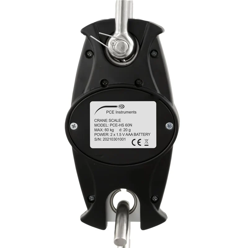 La grúa de carga se alimenta con dos pilas de 1,5 V, tipo AAA lo que permite un uso móvil. Para alargar la autonomía de las pilas la grúa de carga cuenta con la función de desconexión automática tras 15 minutos de inactividad. Opcionalmente puede solicitar a PCE Instrumentes un certificado de calibración ISO para esta grúa de carga.