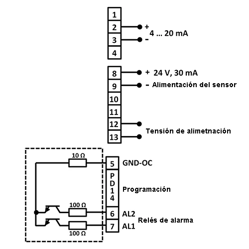 normalizadas 4-20 mA / IP 65 en la parte frontal /