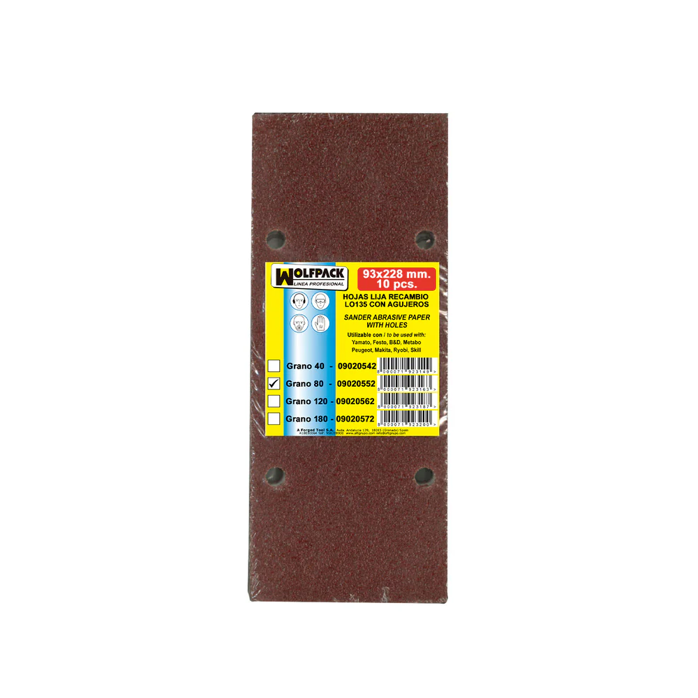 Lija Recambio Con Velcro 93×228 mm. con Agujeros Grano 80 (10 Piezas)