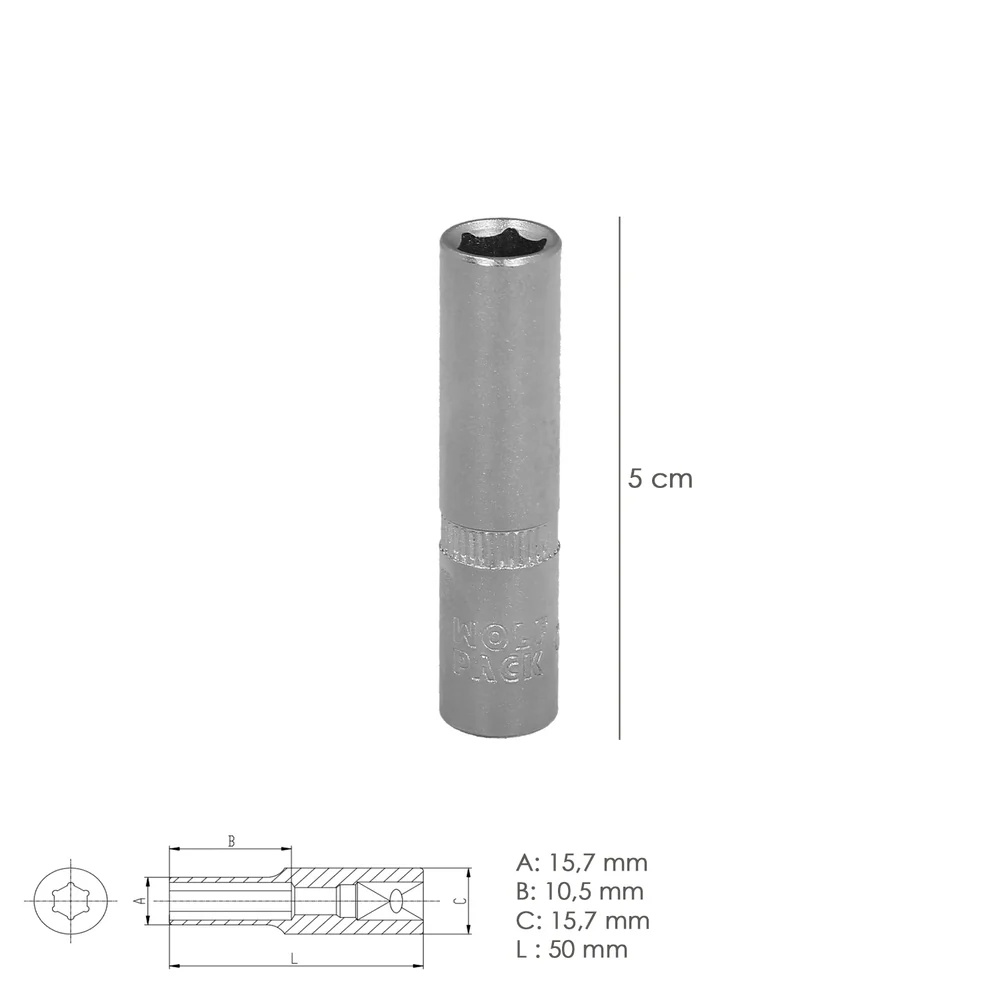 Llave Vaso 1/4″ Hexagonal Larga de la marca WOLFPACK LINEA PROFESIONAL.
