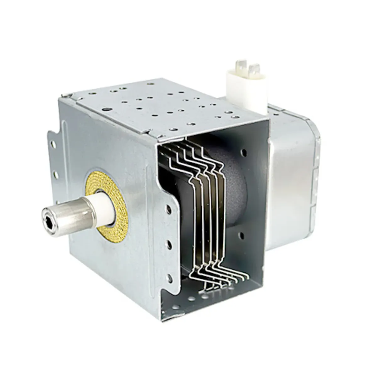 Recambio de magnetrón para reparación de microondas. El magnetrón es la pieza principal del aparato, esta es la que fabrica las ondas que calientan los alimentos. El magnetrón puede averiarse debido a varias razones: poner el microondas en vacío, introducir metales durante el funcionamiento, o algún problema en el circuito de alimentación eléctrica de la pieza.