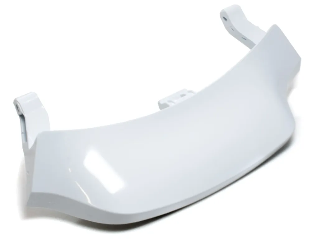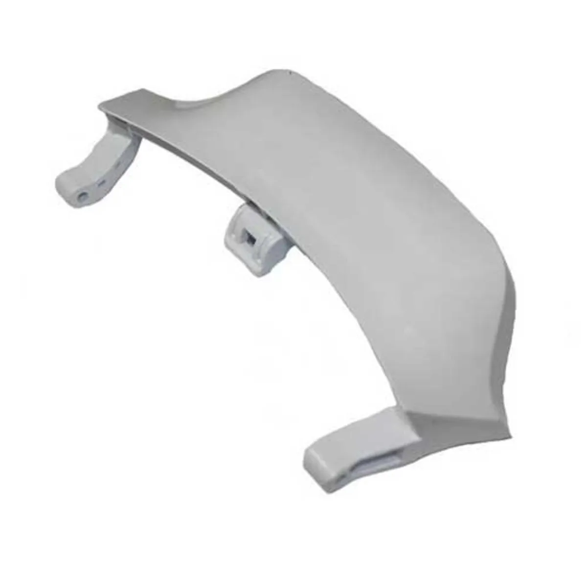 Maneta para cierre de puerta de lavadora. Usado en varios modelos y marcas. Pieza de recambio de plástico blanco.