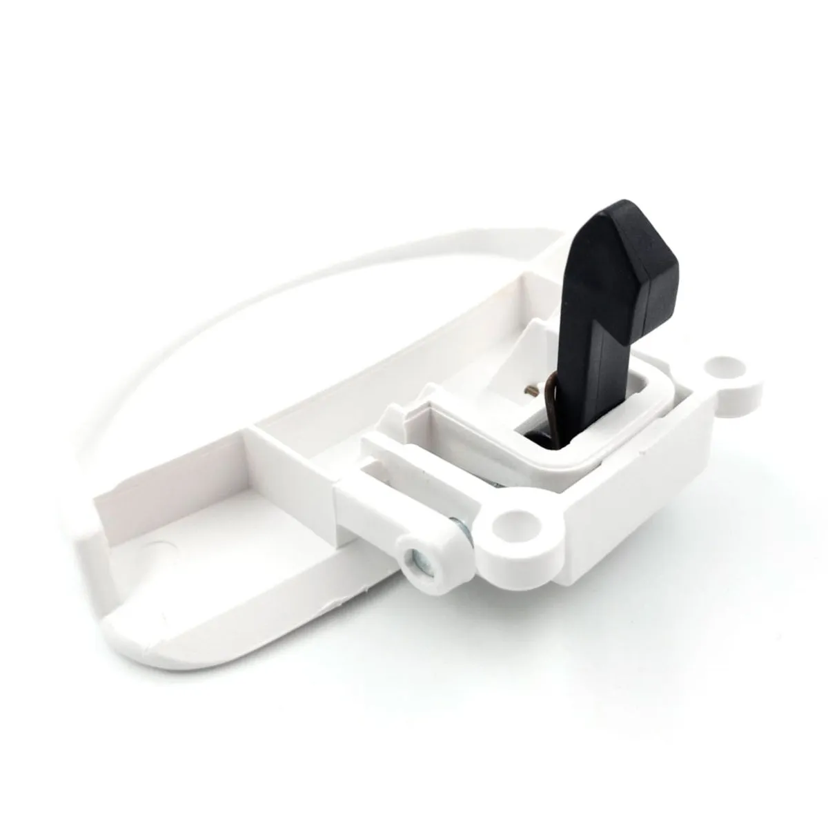 Repuesto de maneta de cierre y pestillo para lavadoras Fagor, Edesa, Westinghouse, Aspes. Este recambio viene insertado en el aro exterior de la puerta. La maneta de cierre se coloca fácilmente en el marco con dos tornillos.