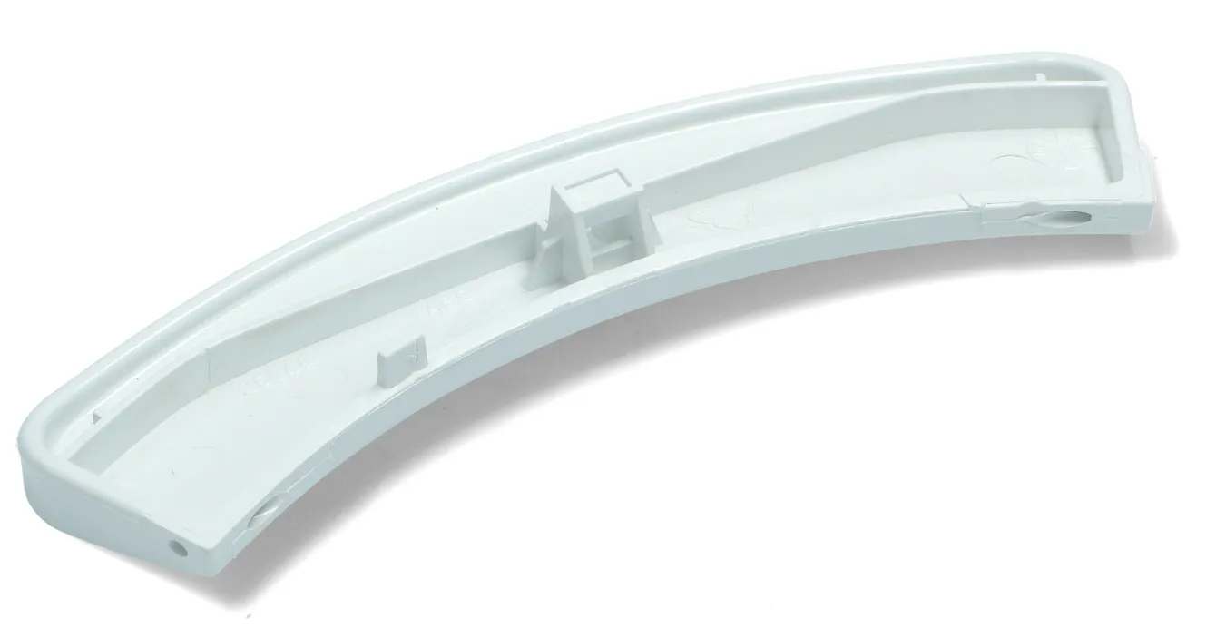 Tirador de apertura para puerta de lavadora. La maneta de la puerta engancha con el pestillo que cierra la puerta, y debido al uso, se acaban partiendo y es necesaria la reparación del aparato.