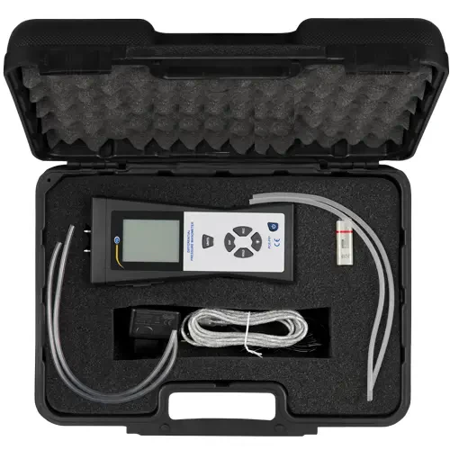 El manómetro de presión diferencial es un medidor robusto, amplio y compacto para la medición de presión, con selección de 11 unidades. El manometro de presion es especialmente idóneo para una documentación completa de sus mediciones. Otros ámbitos de uso son por ejemplo la comprobación de presión de entrada o salida de gas licuado. En la gran pantalla del manómetro de presión diferencial puede ver simultáneamente al valor de medición actual los valores máximo, mínimo y promedio. Si desea por ejemplo, averiguar y documentar oscilaciones en la presión, puede usar el software que le permite transmitir al PC cada segundo los valores de medición y presentar los datos en forma de tabla o de forma gráfica.