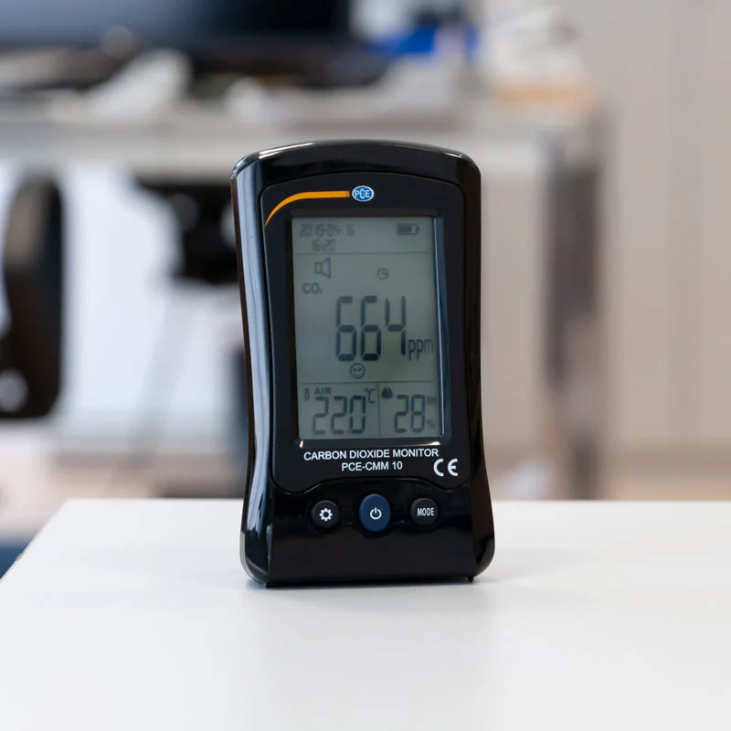 El dióxido de carbono es un componente natural del aire que respiramos y es incoloro, inodoro e insípido. El gas puede ser tóxico en altas concentraciones. En habitaciones con poca ventilación, los niveles de dióxido de carbono pueden aumentar rápidamente y influir en nuestro bienestar. Es por ello que el control regular de la calidad del aire interior es esencial para evitar problemas de concentración y otras consecuencias para la salud. El medidor de dióxido de carbono de PCE Instruments es especialmente eficaz, rápido y cómodo en determinar la calidad del aire en oficinas y aulas. El medidor de dióxido de carbono ha sido desarrollado para medir en interiores y es un dispositivo fiable y multifuncional..