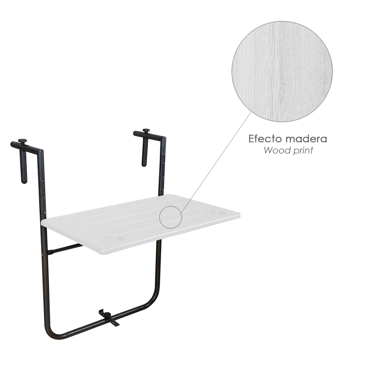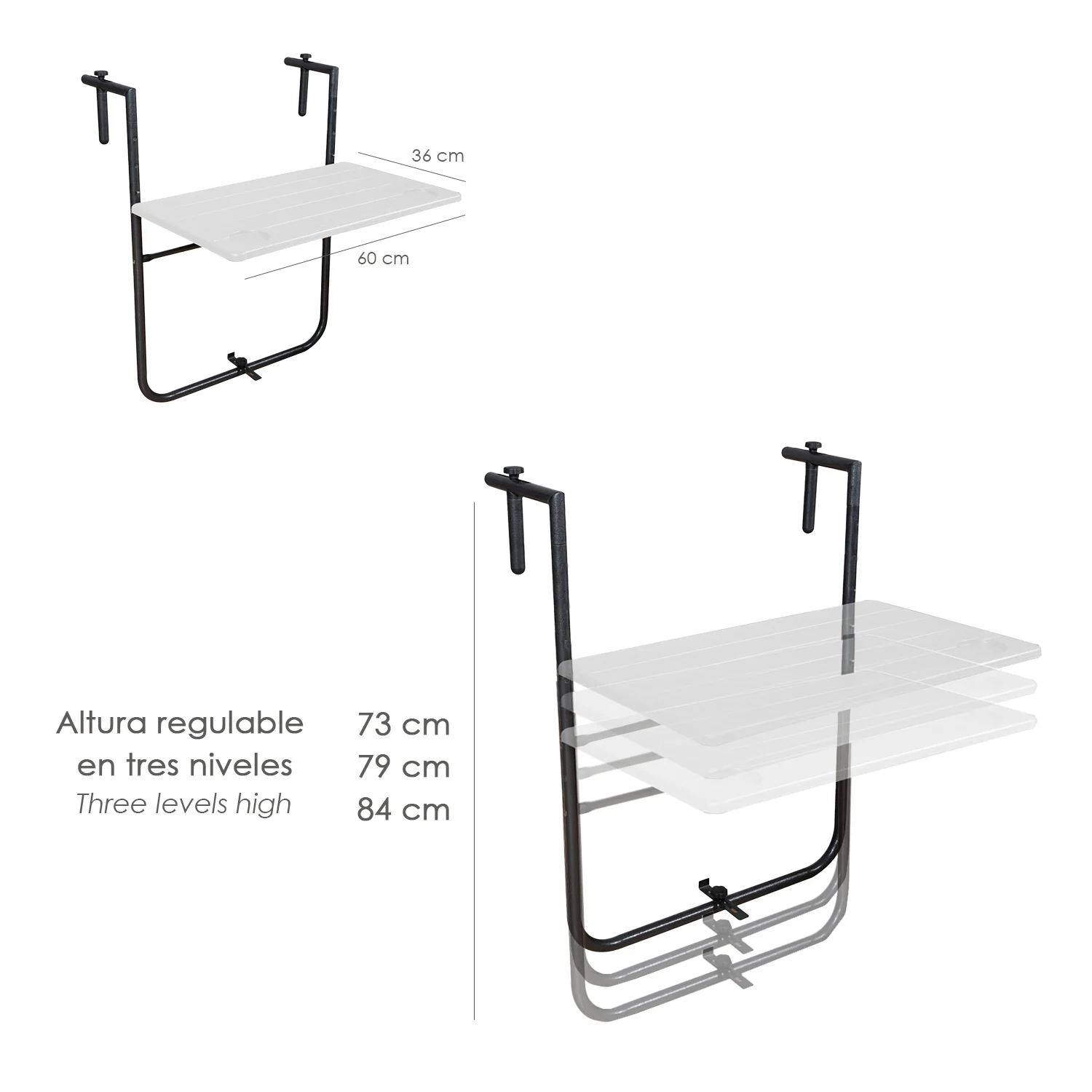 Mesa Plegable Colgante Para Balcones / Terrazas 36×60 cm. Altura Regulable