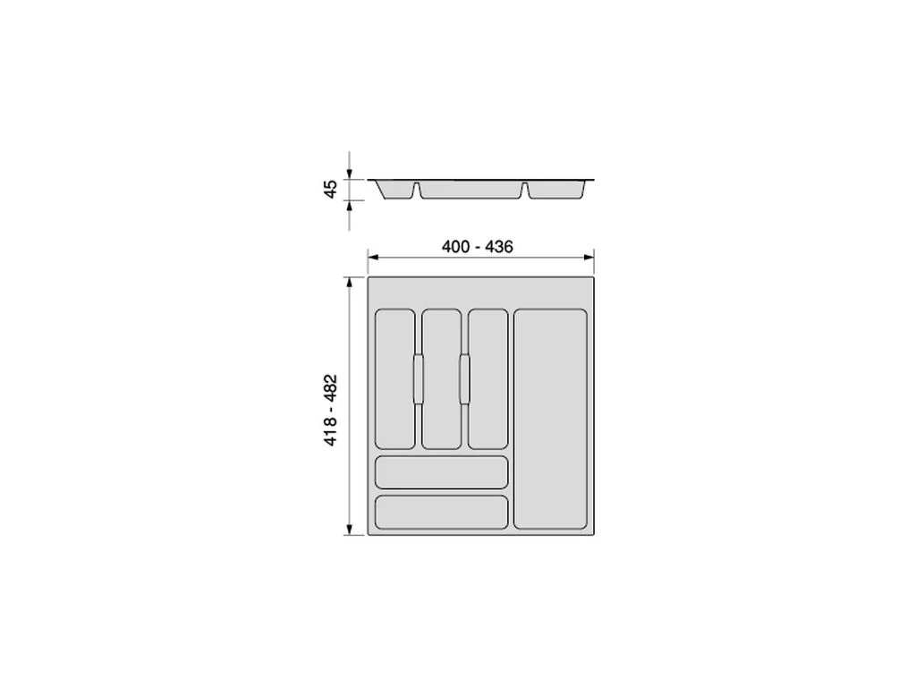- Cubertero de 436x482mm dimensionado para cajones de módulo de ancho 500 mm.
