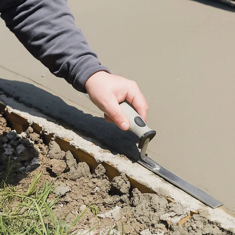 Paleta de bordear 12 mm (espesor 1,5 mm). Herramienta estrecha para aplicar y perfilar morteros o lechadas en juntas finas, remates y trabajos de acabado en albañilería. Mango de goma de alto agarre para control seguro incluso en frío, calor o superficies húmedas.
