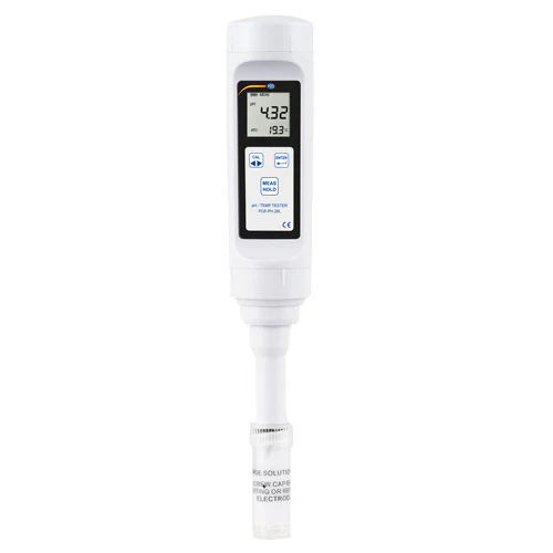 El pH-metro digital está equipado con un electrodo de membrana plano. El electrodo del pH-metro digital es alargado. Así podrá introducir el pH-metro digital en tubos de ensayos para medir el pH de medios viscosos. Esta característica permite usar pequeñas cantidades de líquido para determinar el pH. Esta característica permite al pH-metro usar pequeñas cantidades de líquido para determinar el pH. Por lo tanto, el pH-metro se puede utilizar no solo insitu sino también en el laboratorio con volúmenes muy pequeños de muestra.