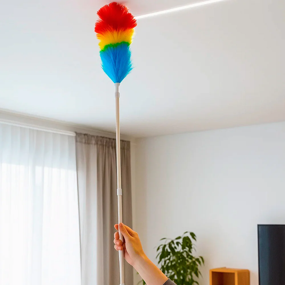 Este plumero es ideal para el hogar, oficinas o comercios, y destaca por su eficacia en la limpieza de techos altos y mobiliario que suele acumular polvo.