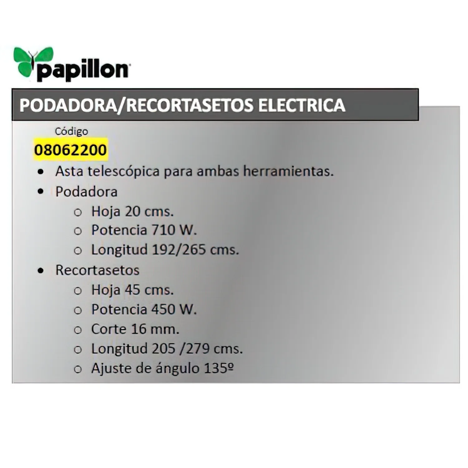 Sé el primero en valorar “Podadora / Cortasetos Electrica Extensible Papillon”