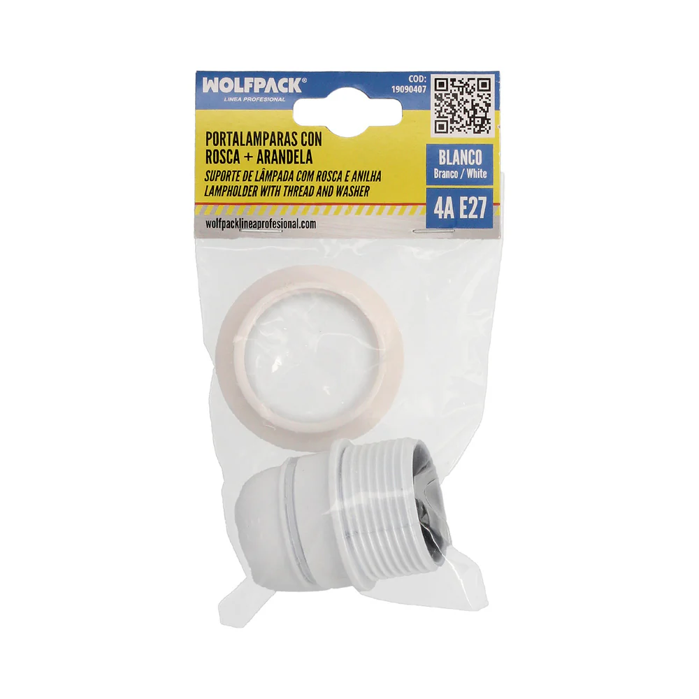 Portalamparas 4 Amperios Rosca E-27 Con Arandela. Color Blanco