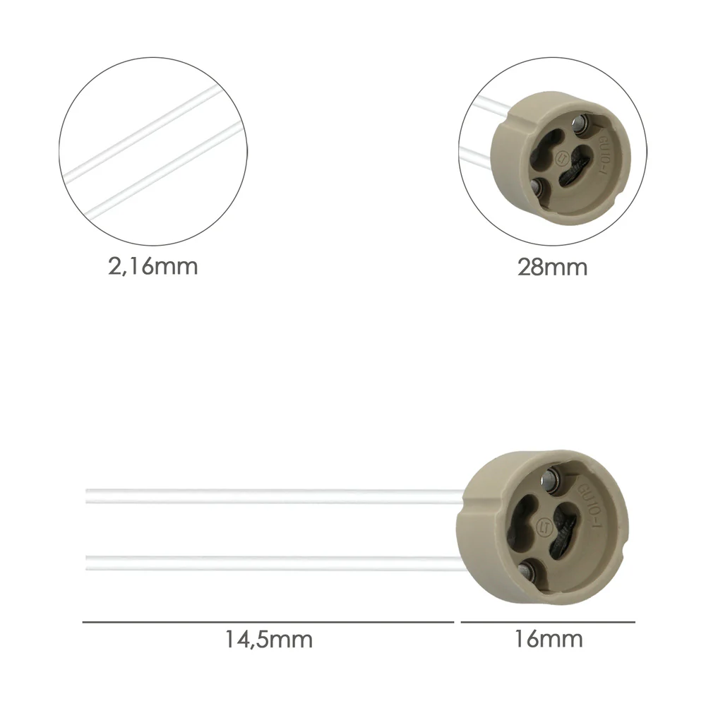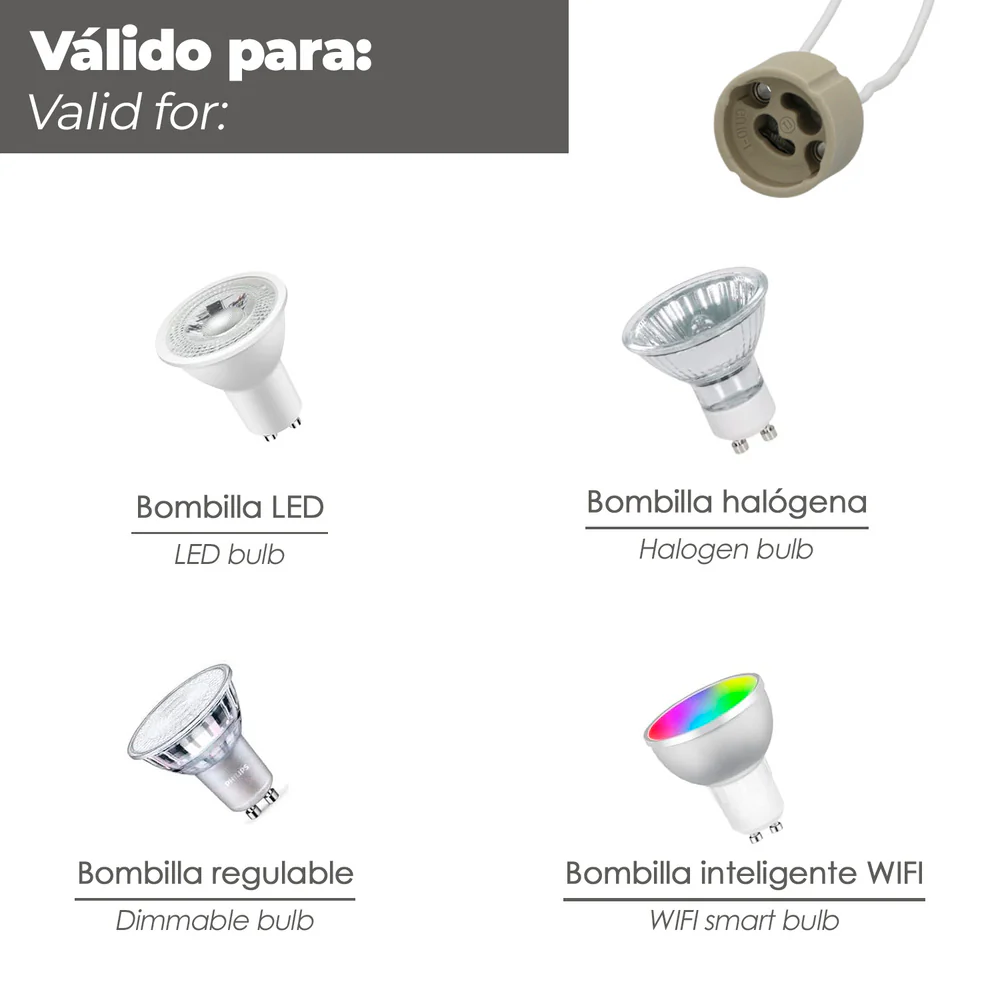 • Artículo también conocido como portalámparas GU10, Base Gu10, Casquillo GU10, soporte para bombilla GU10, portalámparas LED GU10, portalámpara bombillas halógenas, portabombillas GU10, etc