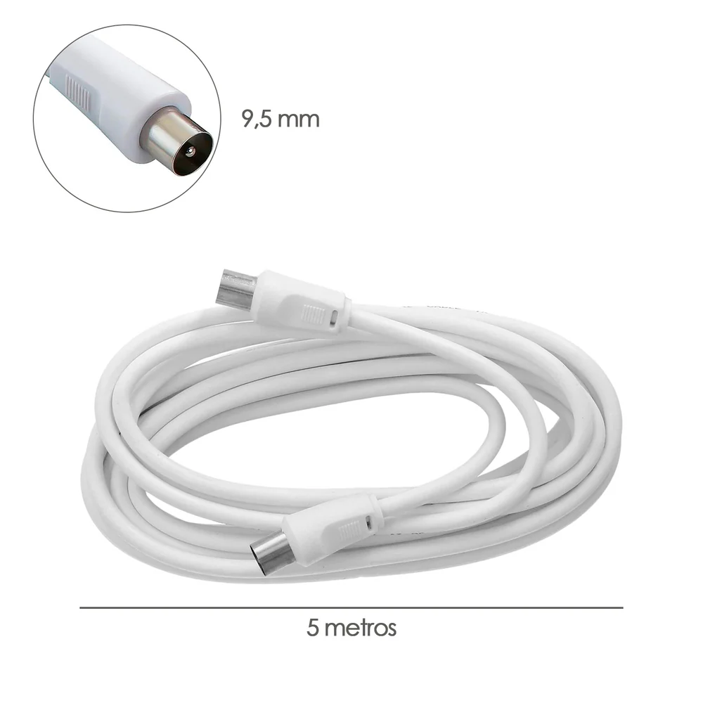 Prolongacion Tv – Video. 5 metros Toma 9,5 mm. Con Adaptador Macho Hembra