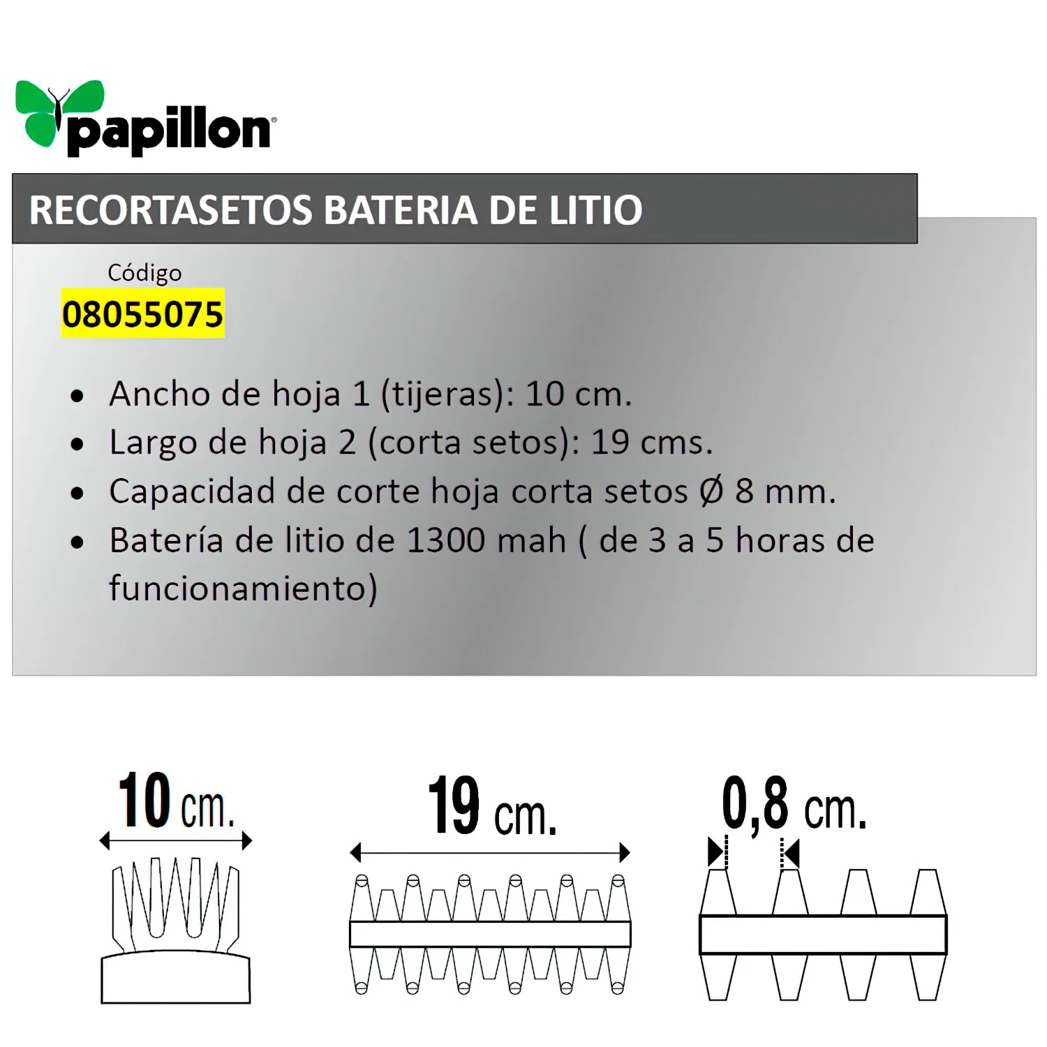 Recortasetos Papillon Bateria Litio 100 mm.
