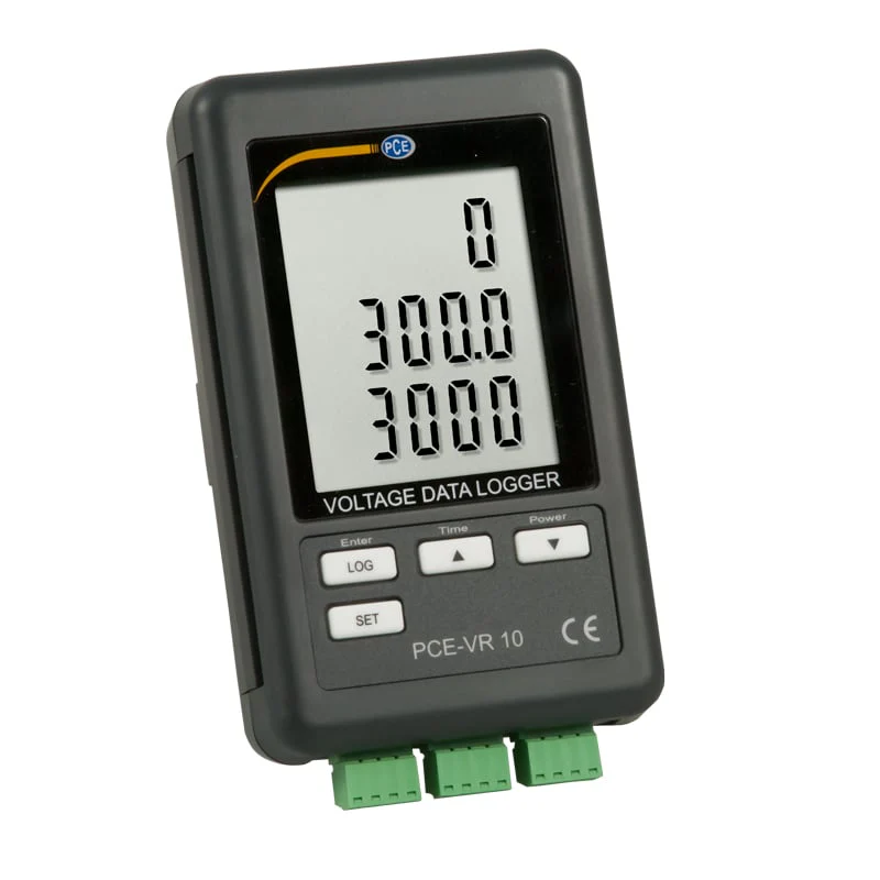 El registrador de datos de tensión de PCE Instruments se utiliza para registrar de hasta 3 canales señales de 0…3000 mV. El registrador de datos de tension almacena las tensiones medidas en una tarjeta SD en formato Excel. Para registrar tensiones más altas en un rango entre 0…10 V puede utilizar un divisor de tensión. La tensión medida se transmite a través de bornes de conexión con abrazaderas al registrador de datos, que presenta los valores correspondientes directamente en la pantalla y al mismo tiempo los almacena en la memoria con la correspondiente fecha y hora. No es necesario escalar la señal de medición, ya que los valores medidos se almacenan directamente como valor medido en mV. El escalado se puede llevar a cabo manualmente en Excel. El registrador de datos de tensión determina así los datos puros en bruto de los sensores, lo que significa que cualquier procesamiento posterior y la evaluación de los datos se pueden hacer de forma muy flexible utilizando programas de hoja de cálculo como Excel.