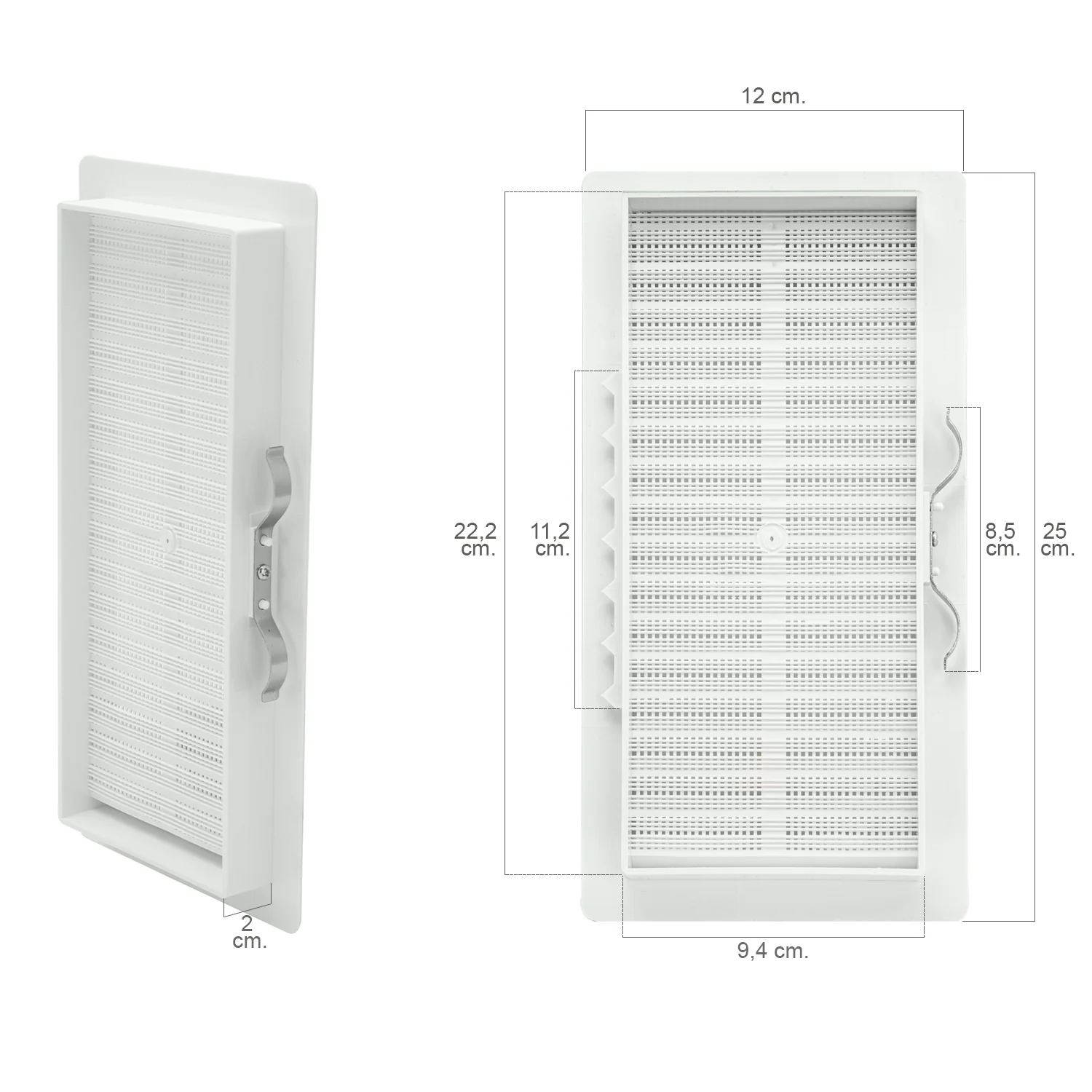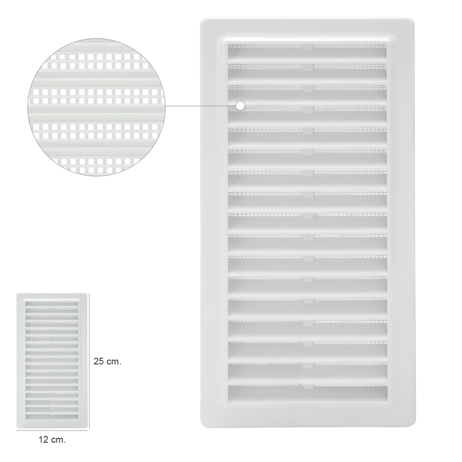 Rejilla Plastico Empotrar Con Malla Posterior 25×12 cm.