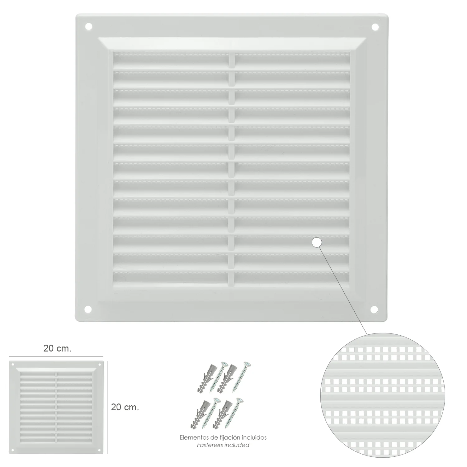 - Artículo conocido como rejilla ventilación empotrar, rejilla salida humos, rejilla humos baño, rejilla respiradero baño, rejilla salida humo cocina empotrar