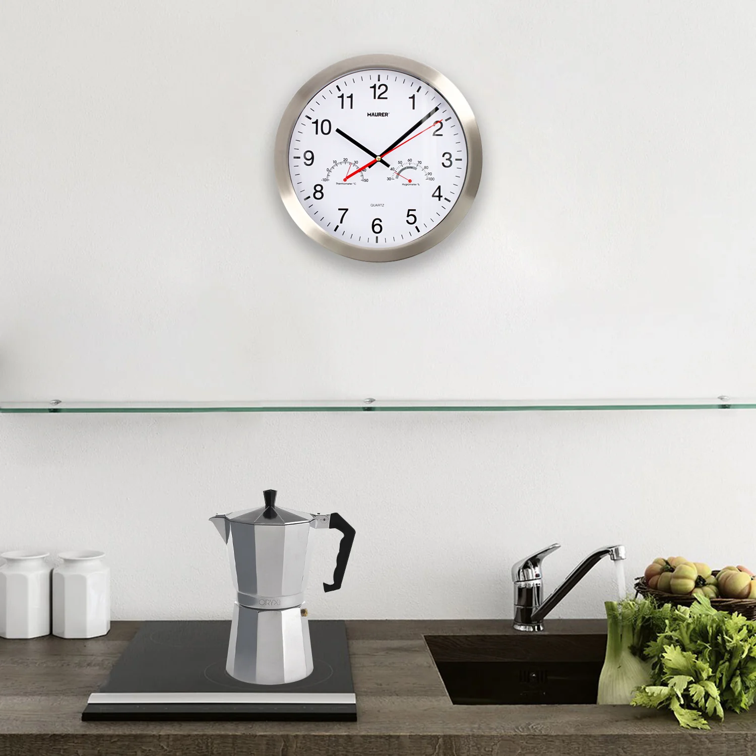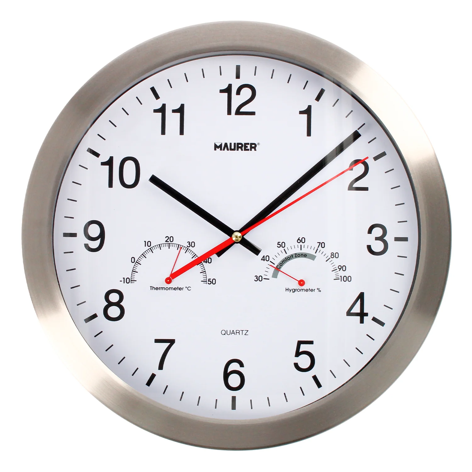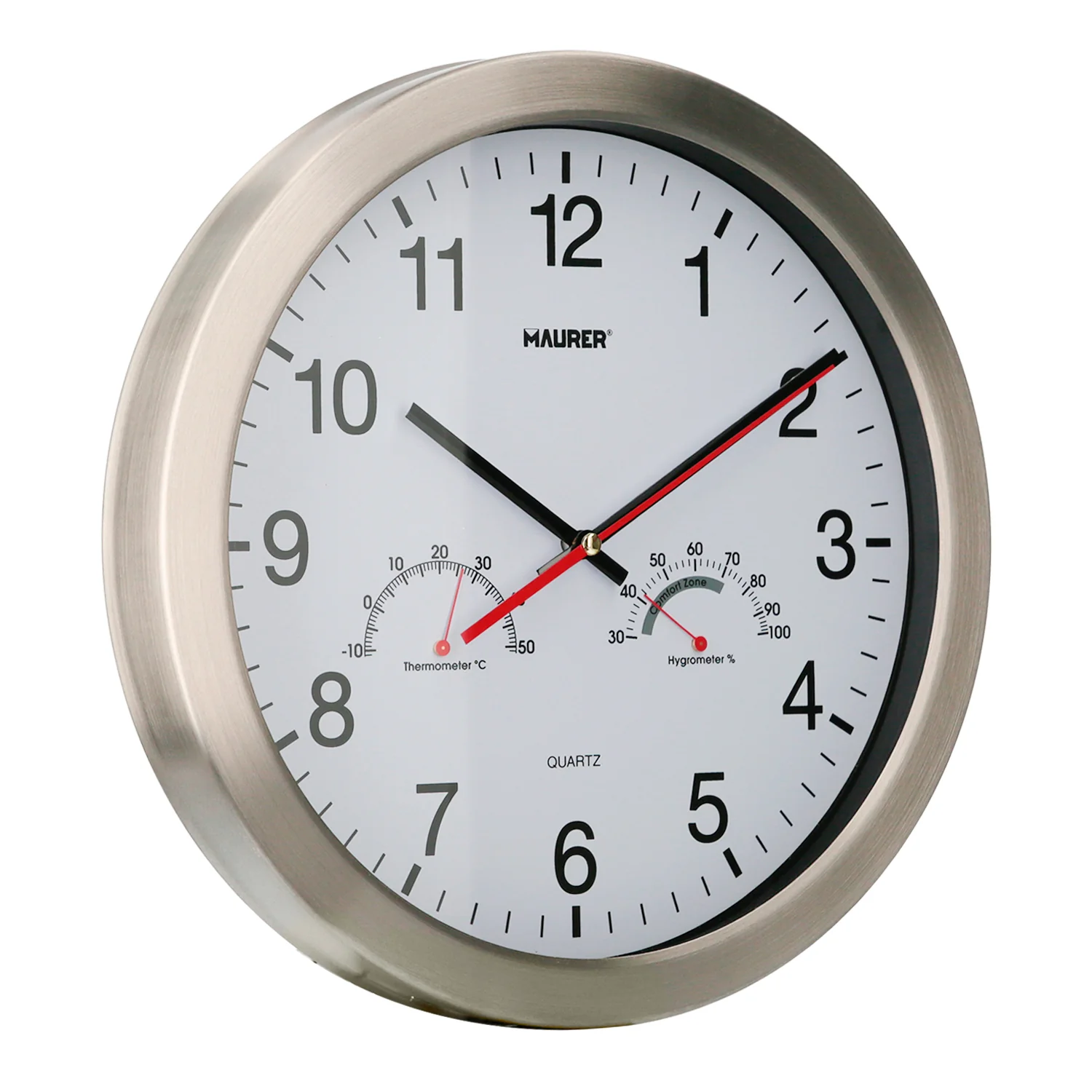 Reloj De Pared Ø 30 cm. Con Higrometro y Termometro. Frontal En Acero
