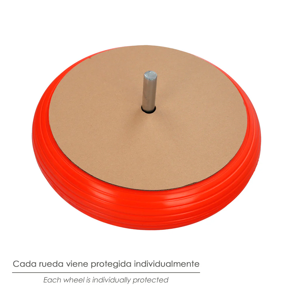 - La llanta y los ejes están elaborados en acero galvanizado, lo que garantiza una durabilidad excepcional y una resistencia superior