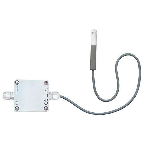 El sensor de humedad PCE-P18 se utiliza en las áreas de la calefacción, ventilación y climatización para controlar la humedad del aire y la temperatura. Las magnitudes medidas del sensor de humedad PCE-P18 salen como señal normalizada de 4 … 20 mA (no aislado eléctricamente). En este sensor de humedad compacto a través de un dispositivo semiconductor se determinan con precisión la humedad del aire y la temperatura. Para la puesta en marcha se alimenta el sensor de humedad PCE-P18 por tensión continua. La salida de las magnitudes medidas se realiza a través de un circuito bifilar. Todas las conexiones en la carcasa resistente al agua (IP 65, solo la carcasa) se realizan a través de contactos de atornillados. Los valores de medición pueden emitirse a través de la interfaz RS485. Esta característica es especialmente útil si desea vincular varios puntos de medición para la vigilancia de su casa.