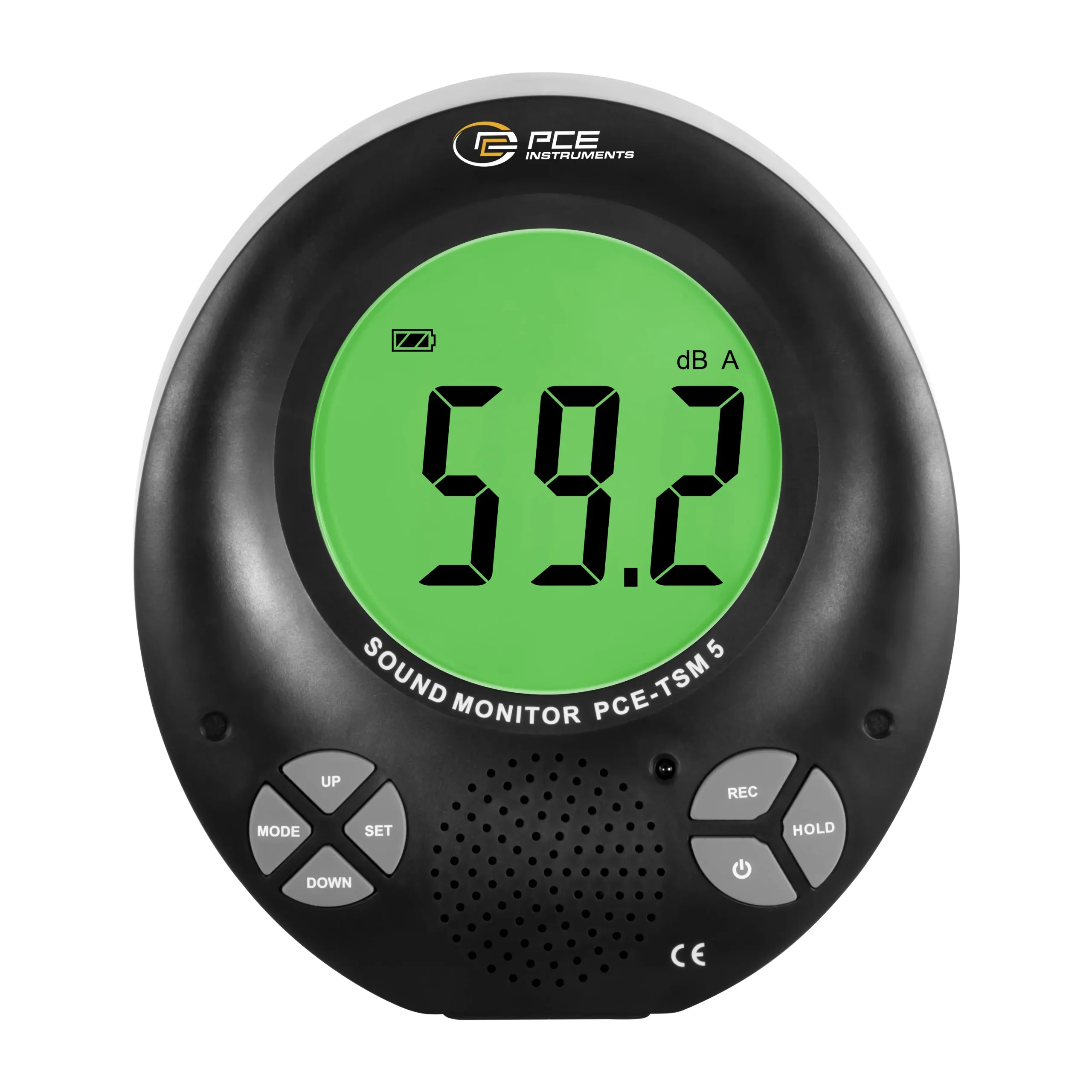 Este sonómetro es un instrumento moderno y versátil con una serie de funciones innovadoras. Una característica destacada del sonometro es su gran pantalla LCD diseñada como un semáforo de ruido. El semáforo de ruido integrado del sonómetro proporciona al usuario una indicación visual inmediata del nivel sonoro actual. Los colores verde, naranja y rojo permiten ver inmediatamente si el nivel de ruido indicado por el sonómetro está dentro del rango aceptable o si es necesario tomar medidas.