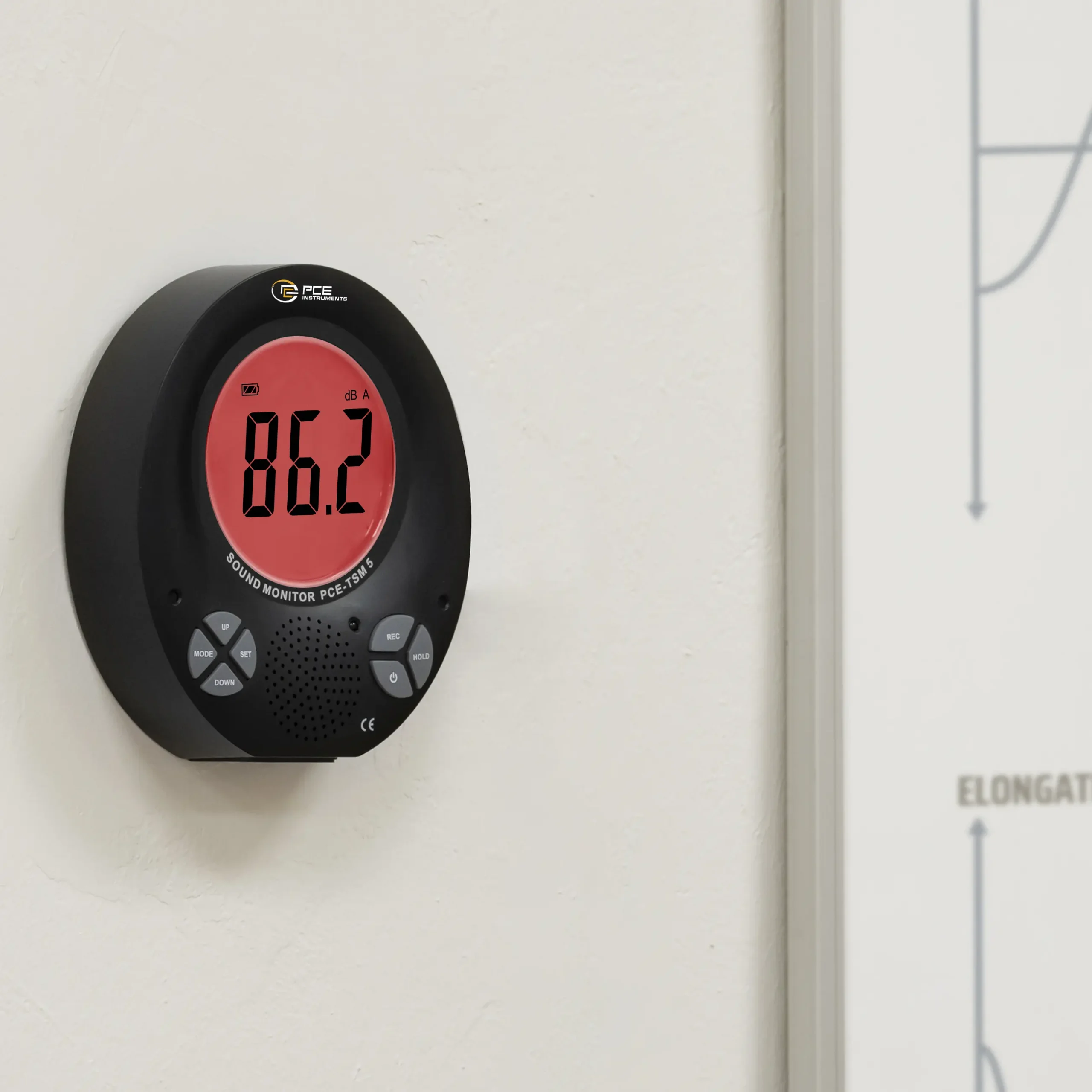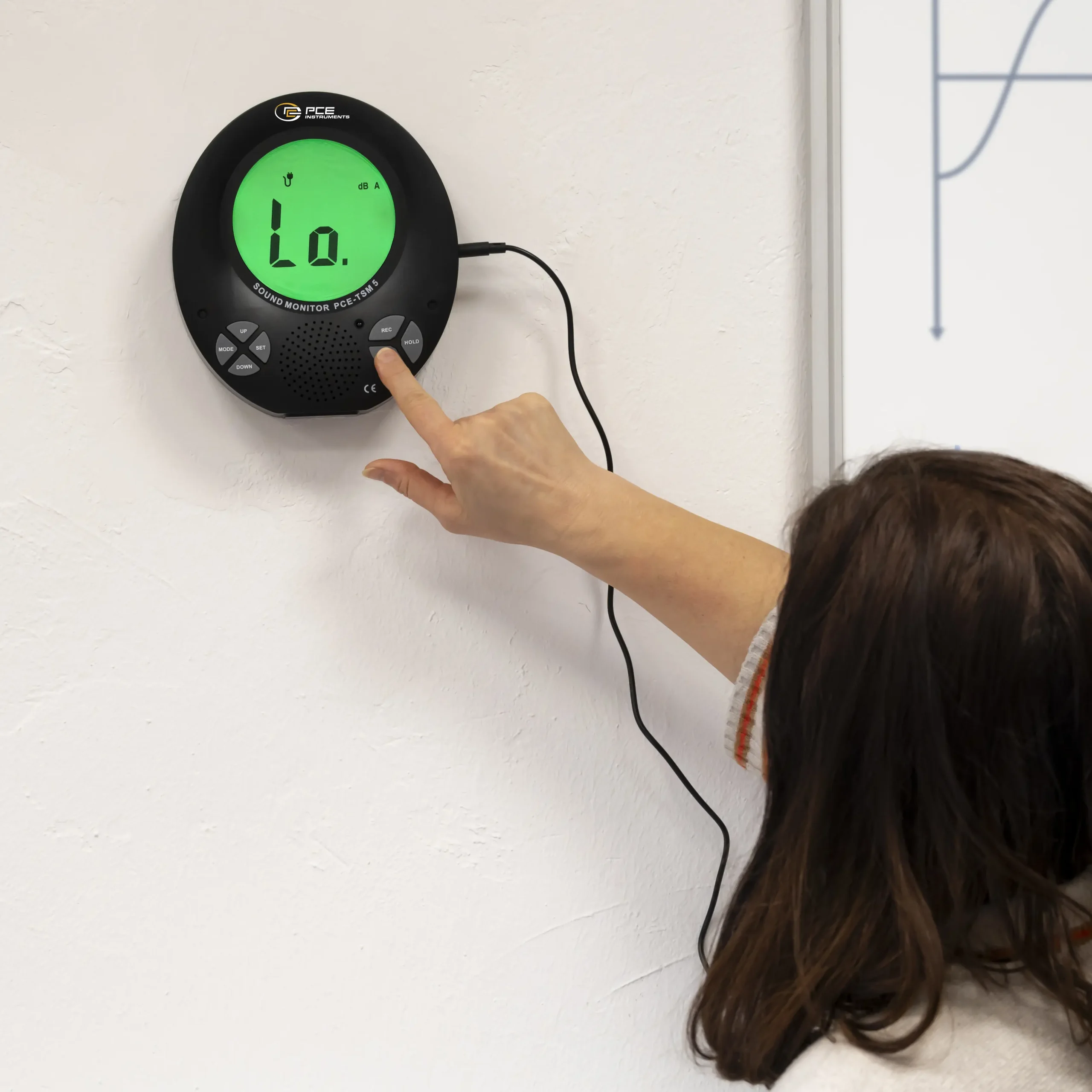 Puede colocar el sonómetro sobre una mesa o colgarlo en una pared. Gracias a ello el sonómetro se adapta a una amplia gama de escenarios. Esta versatilidad y sus innovadoras características hacen del sonómetro una herramienta útil en áreas como escuelas, guarderías, salas de conferencias y salas con usos similares.