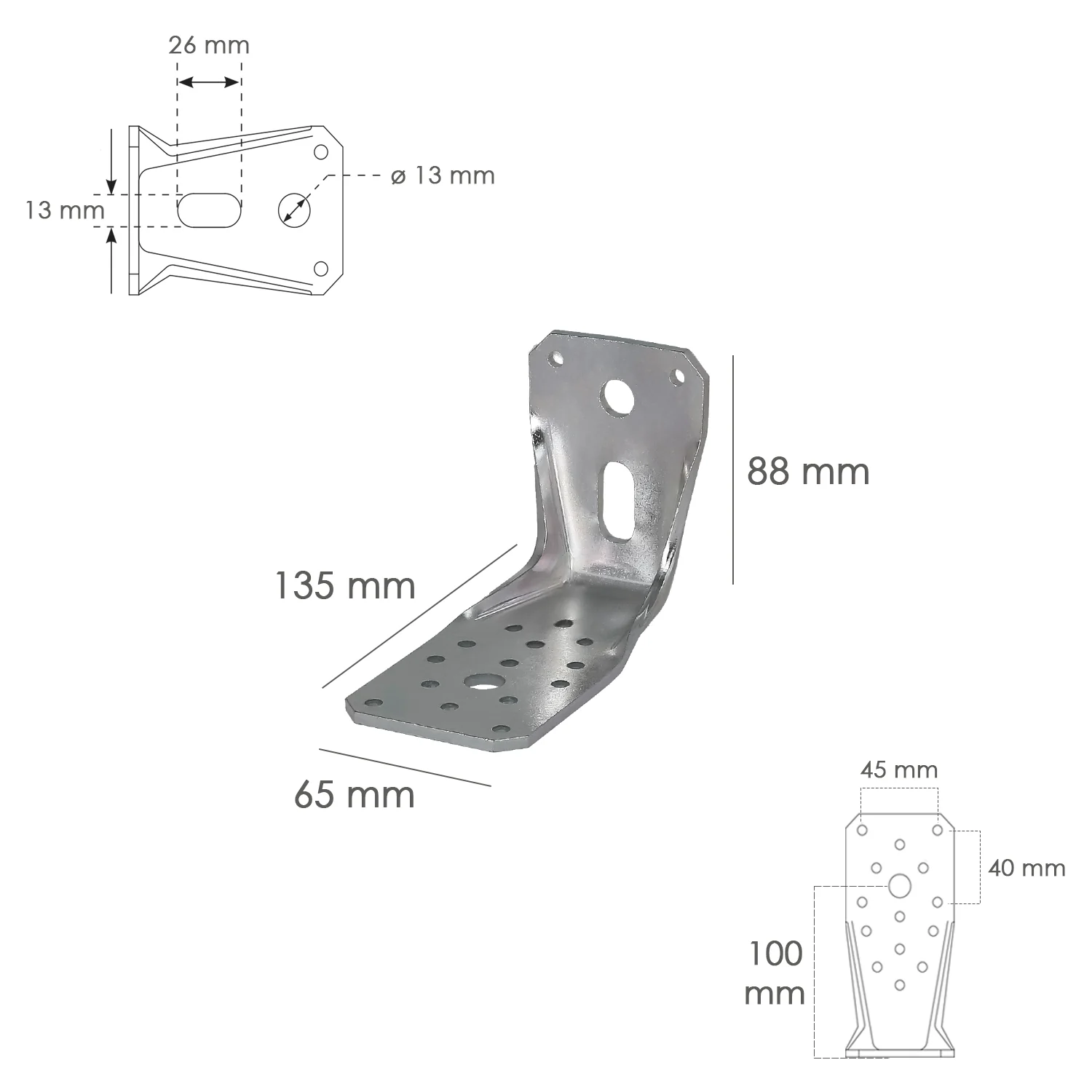 Soporte Para Madera Con Angulo Reforzado 65x88x135 mm. Conector Angular, Escuadra Fijación, Zapata Madera Soporte Pergola Madera