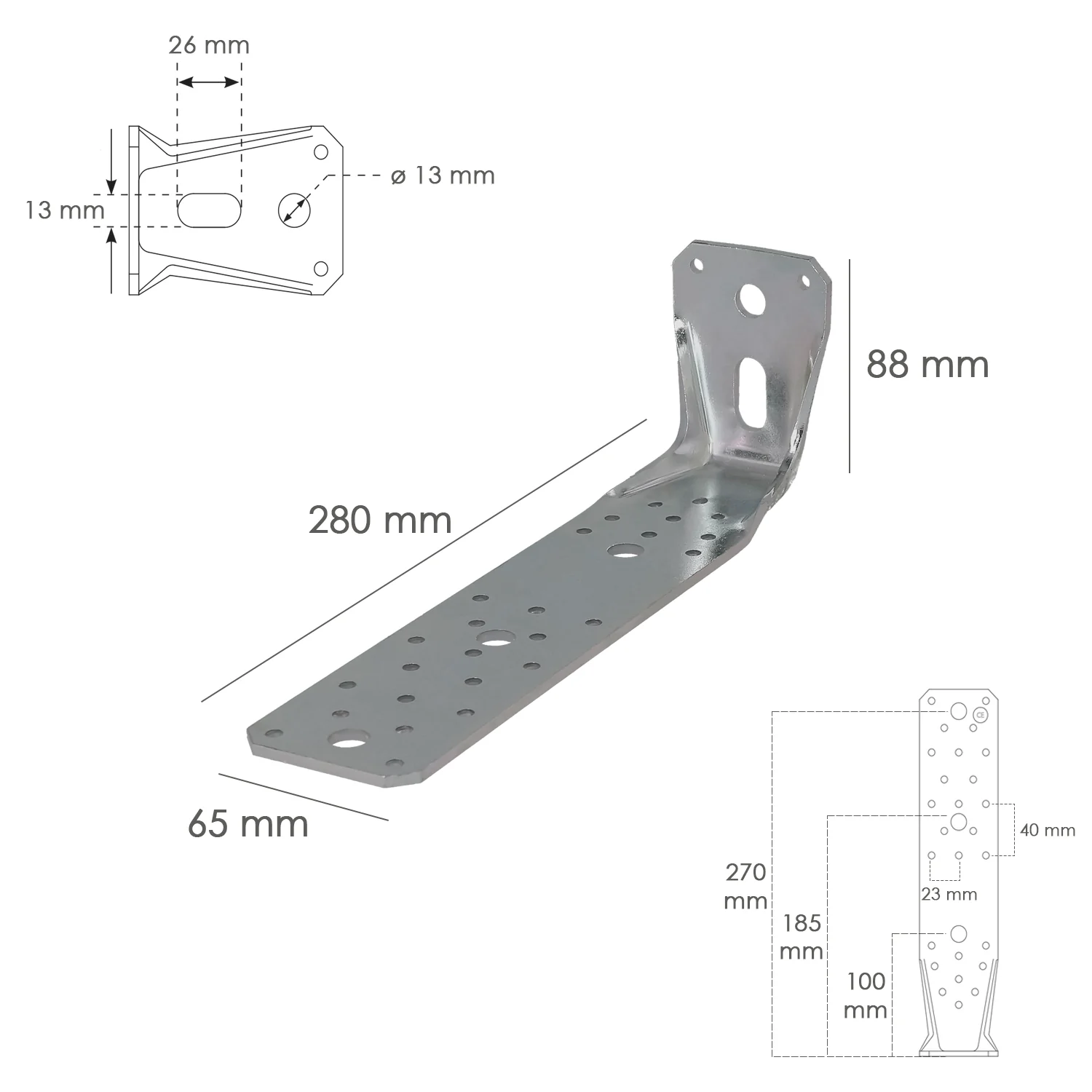 Soporte Para Madera Con Angulo Reforzado 65x88x285 mm. Conector Angular, Escuadra Fijación, Zapata Madera Soporte Pergola Madera