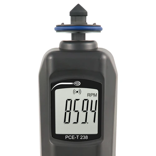 El tacómetro es un dispositivo de mano alimentado por pilas para medir in situ. El tacometro mide las revoluciones de forma óptica y por contacto. Mide también la velocidad superficial. El rango de medición del tacómetro es de máximo 99.999 revoluciones por minuto. Este rango se alcanza midiendo de forma óptica. El rango máximo para las mediciones por contacto es de 19.999 revoluciones por minuto, mientras que la medición de velocidades superficiales alcanza un máximo de 1999,9 metros por minuto. Este tipo de mediciones no suele requerir preparación alguna, por lo que puede medir inmediatamente.